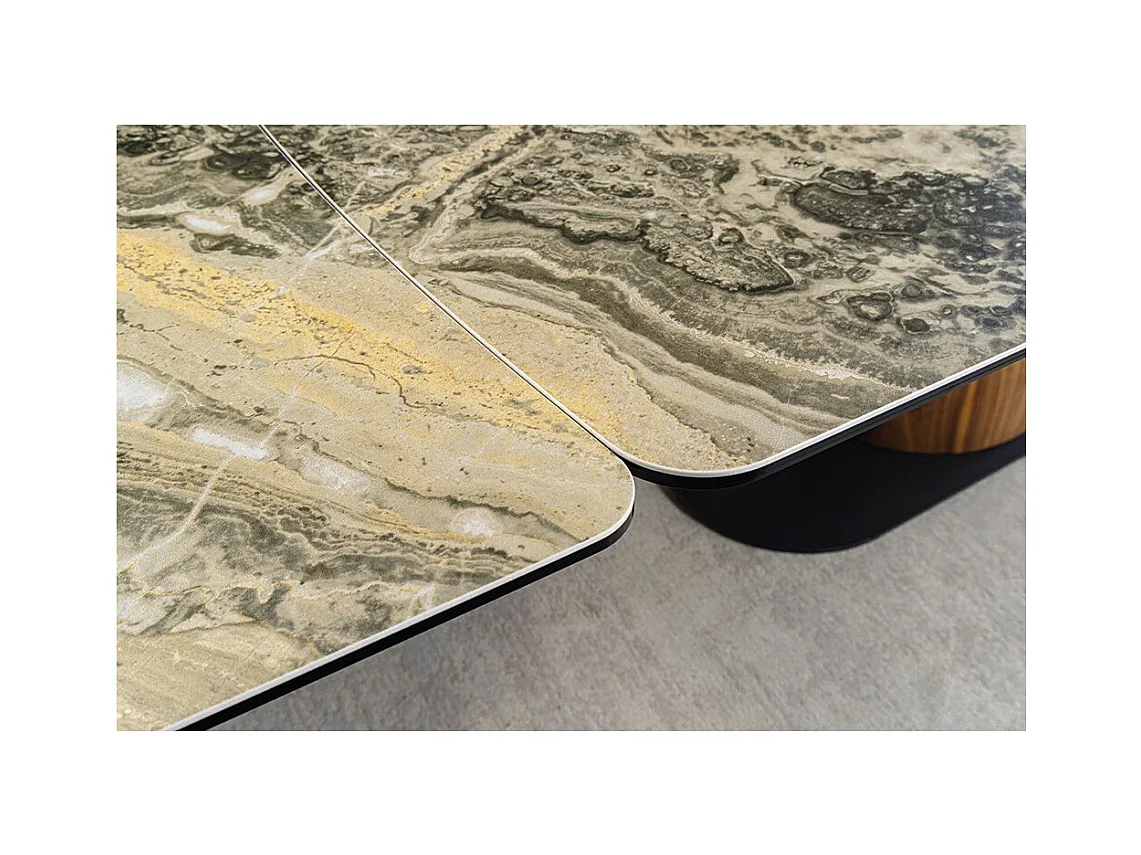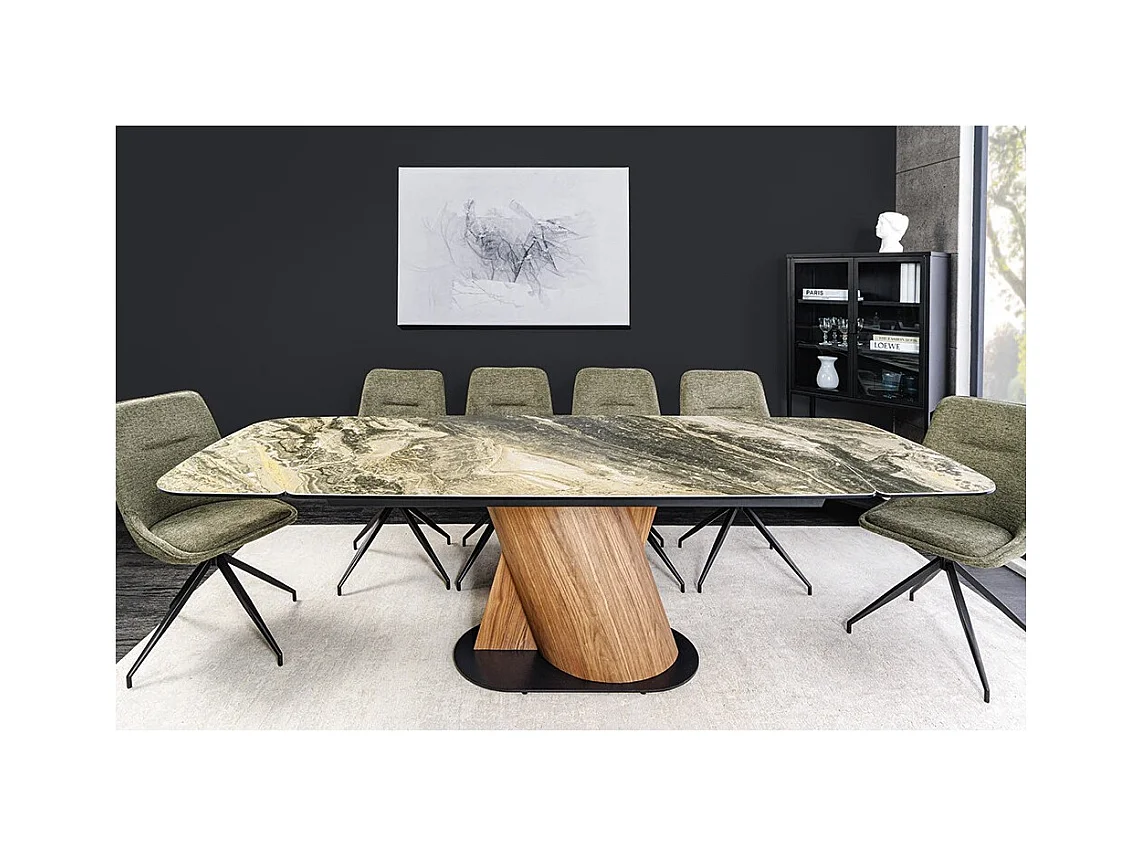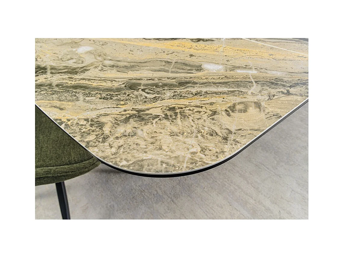 Table de salle à manger VORTEX – Extensible 180 à 260 cm – Plateau céramique aspect marbre beige – Pieds métal – Style moderne