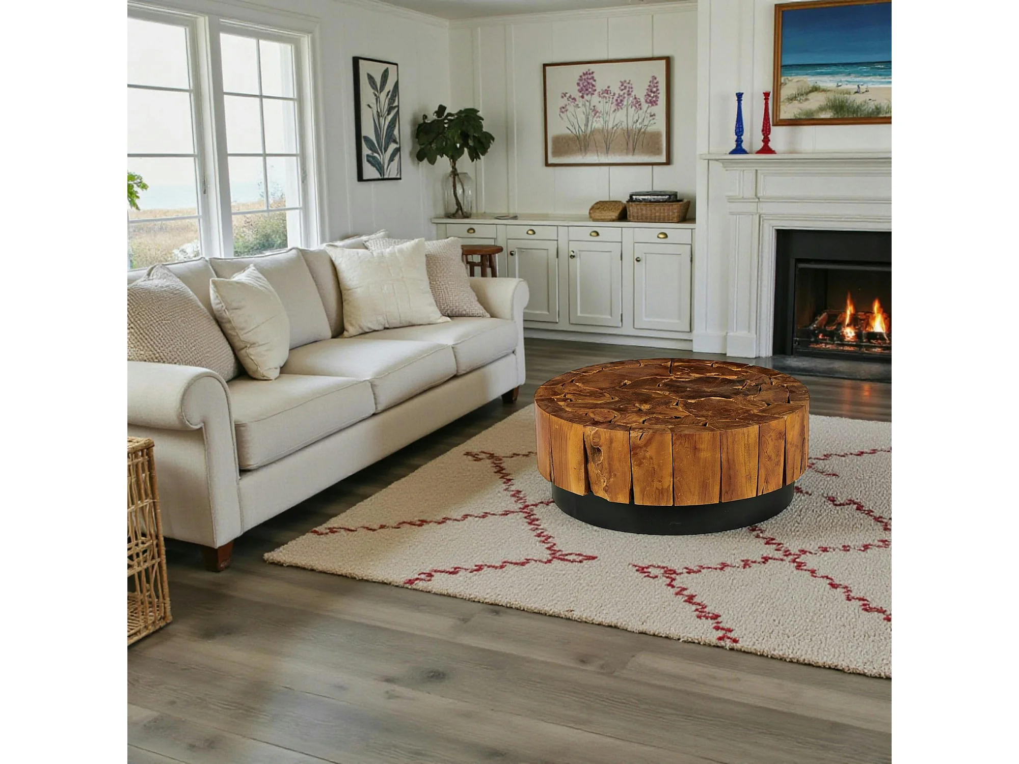 Table de salon ronde teck recyclé D80 cm ARIZONA