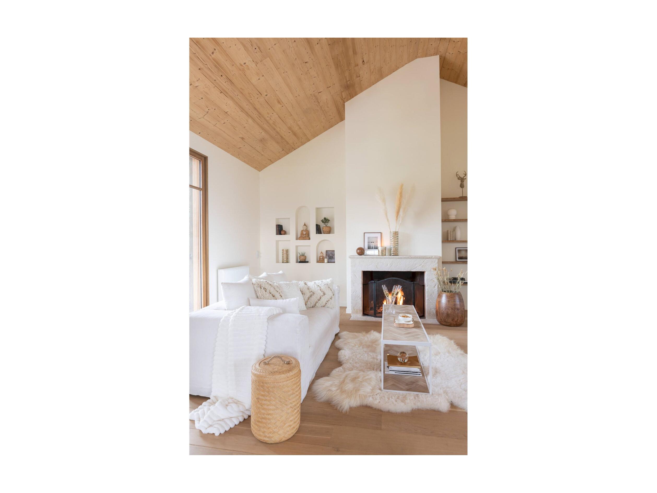 Table de salon zigzag bois naturel et métal blanc élégant