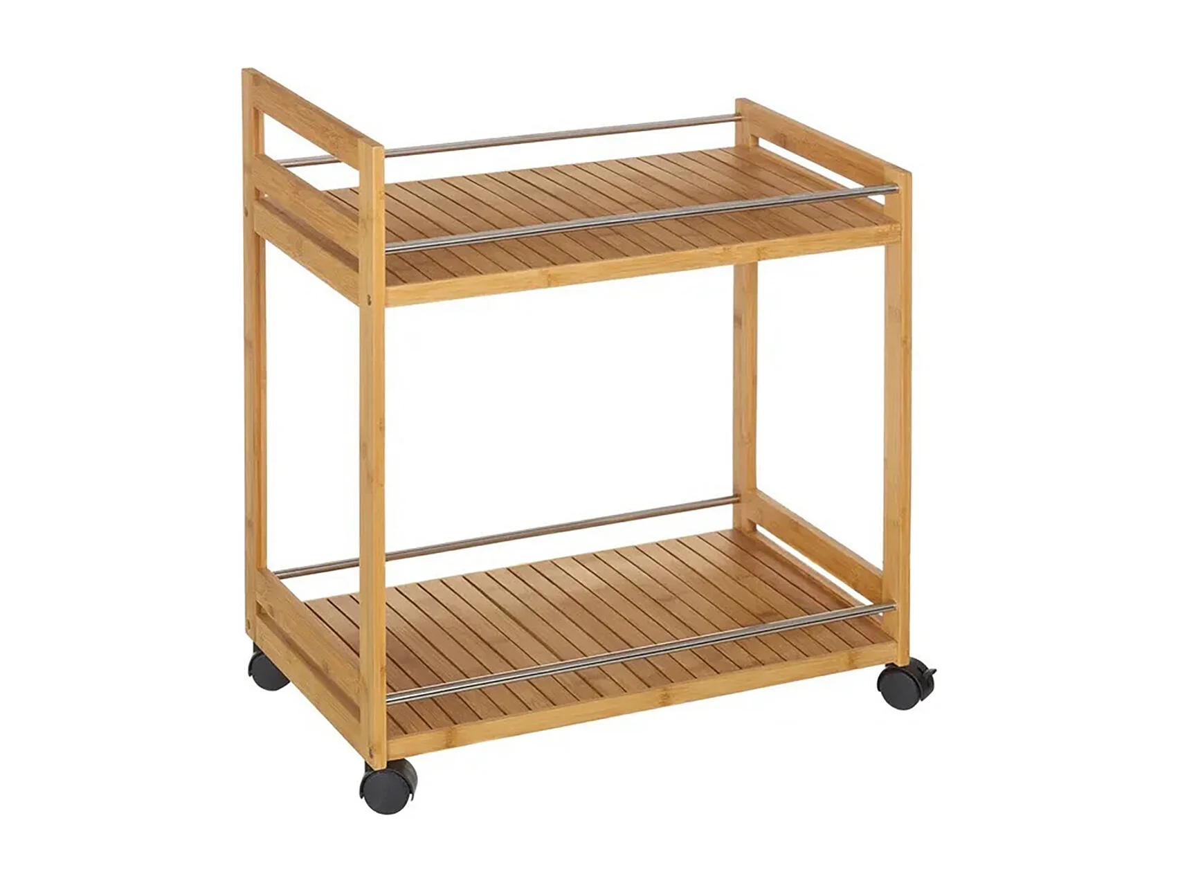Table de service, chariot de service à roulettes en Bambou coloris naturel - Longueur 55 x Profondeur 32 x Hauteur 62,50 cm