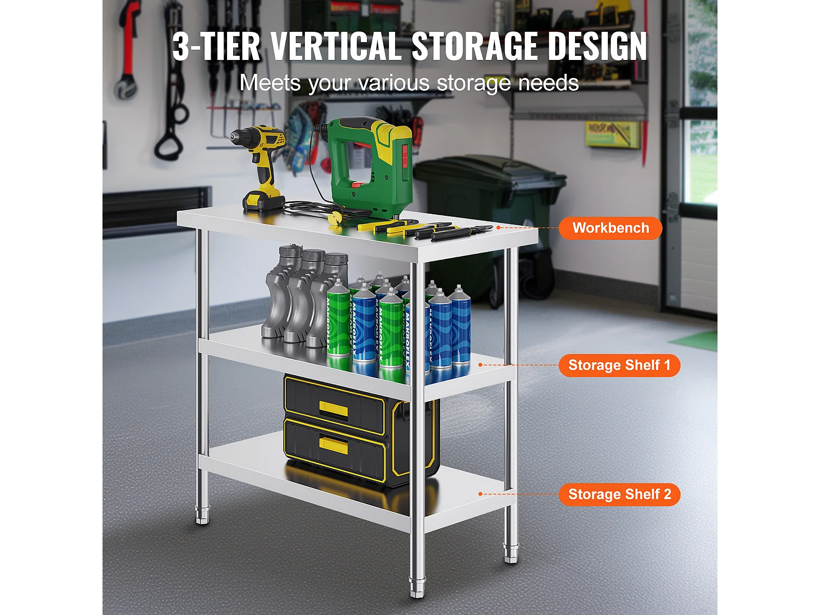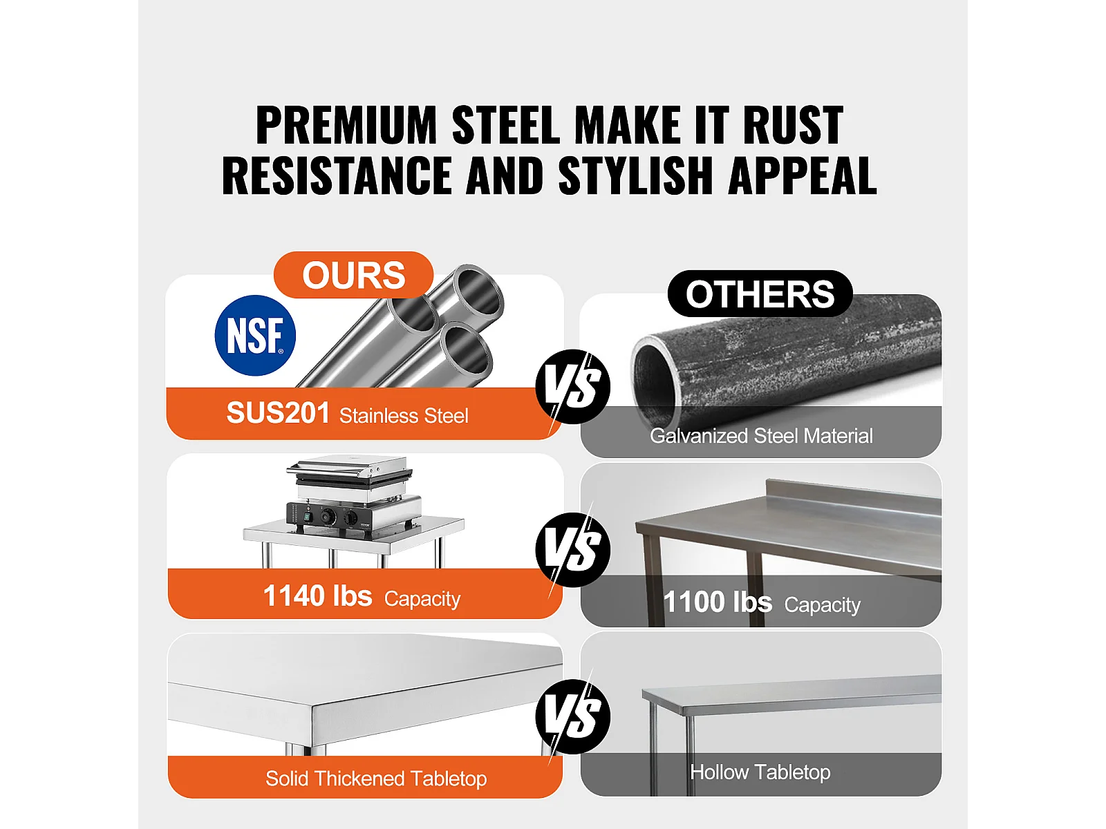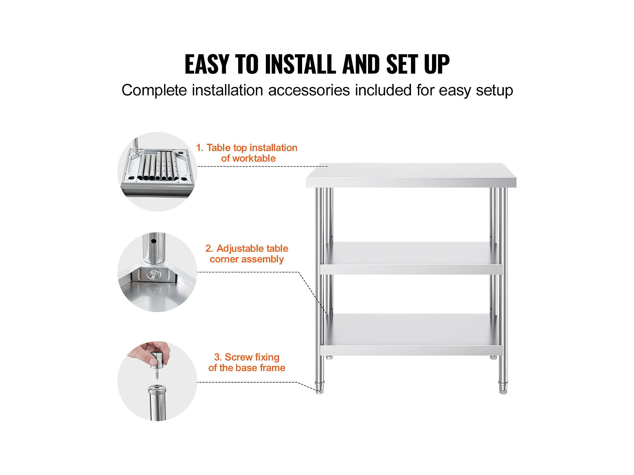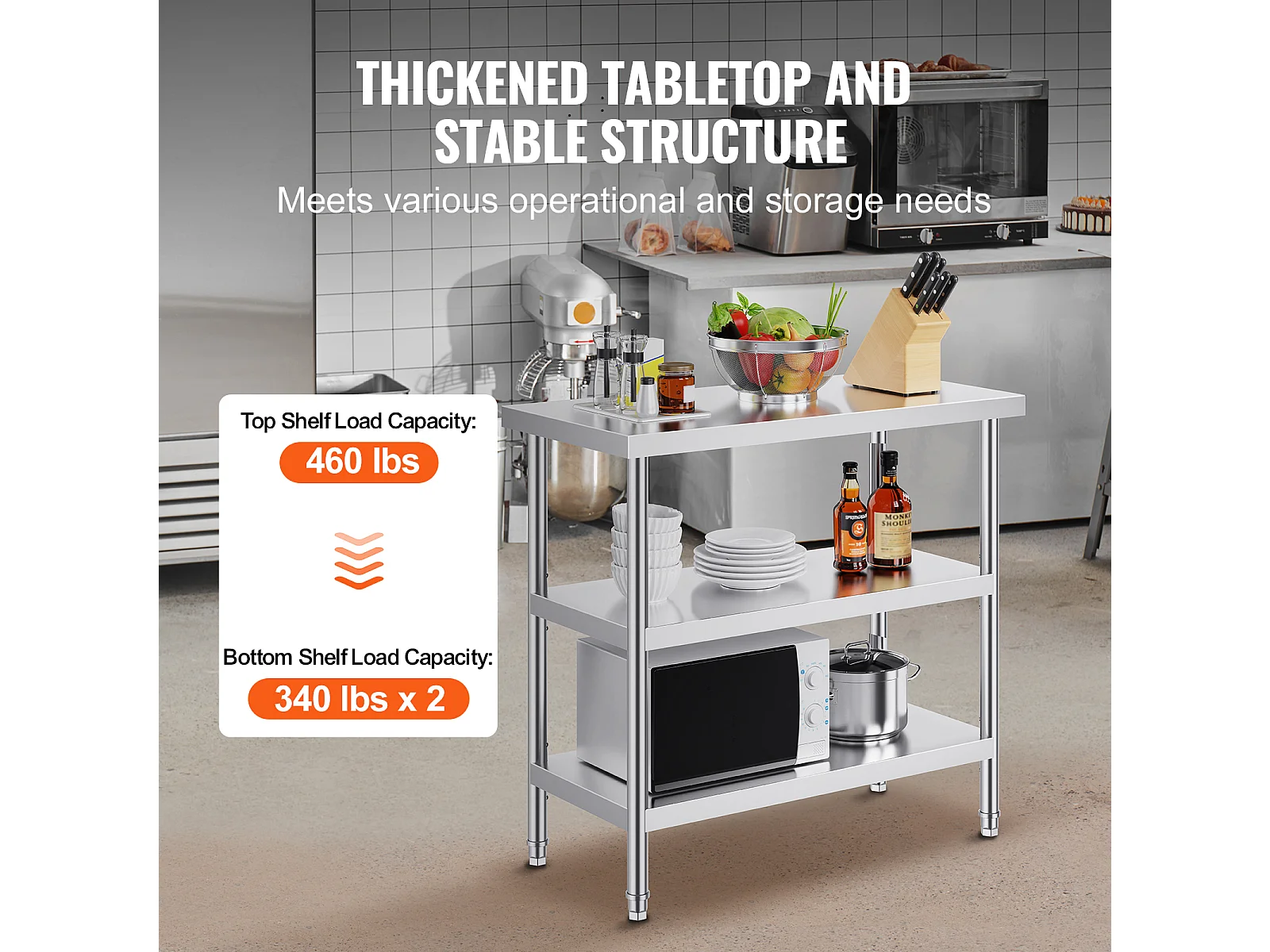 Table de Travail SucceBuy Table de Préparation des Aliments en Acier Inoxydable 45.7 x 91.4 cm pour Cuisine Table de Travail Commerciale