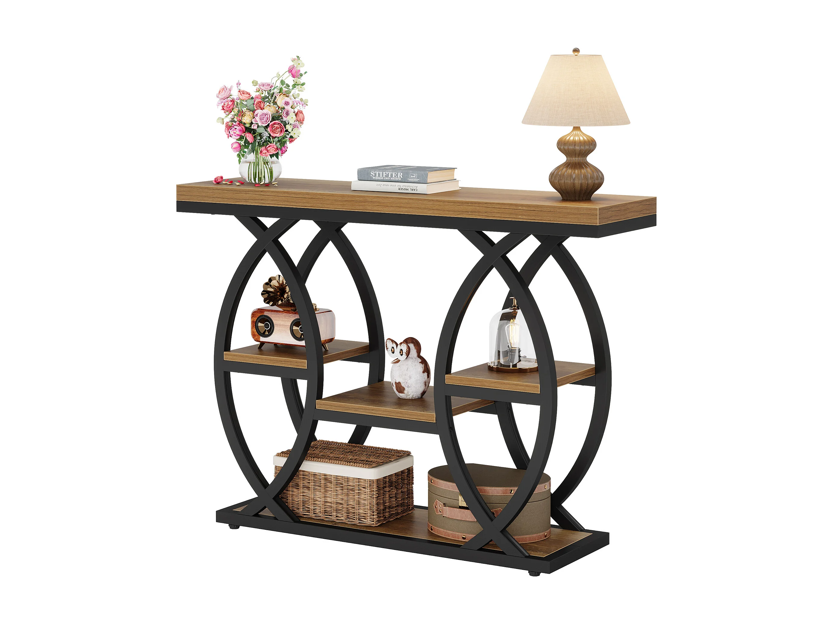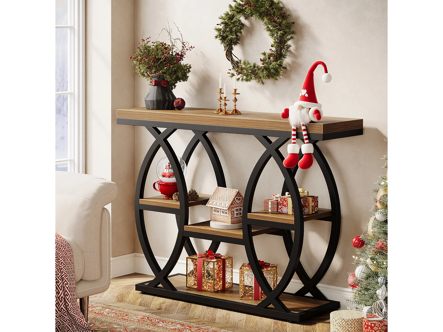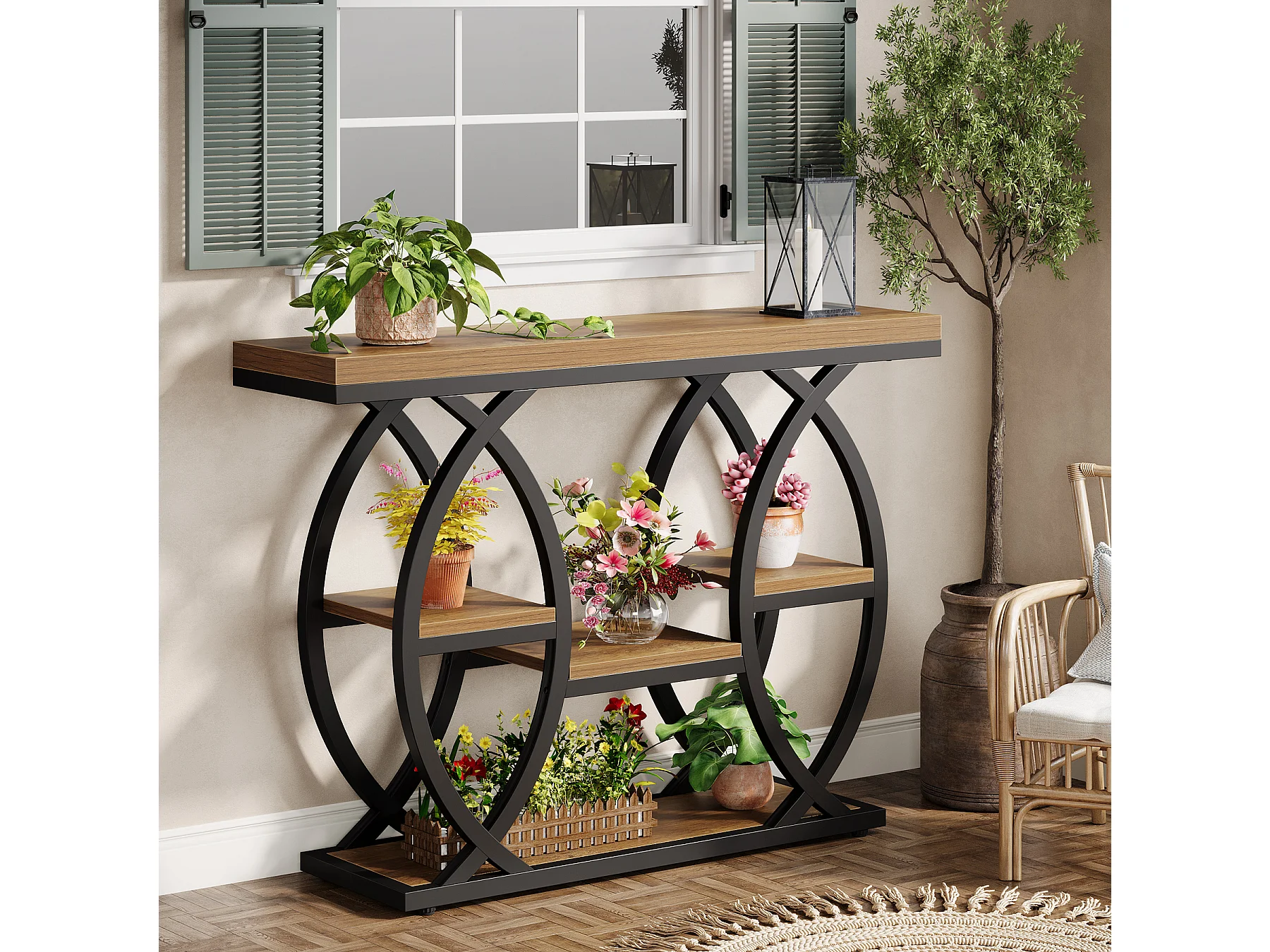 Table d'entrée industrielle à 4 niveaux avec étagères de rangement, tables d'appoint étroites