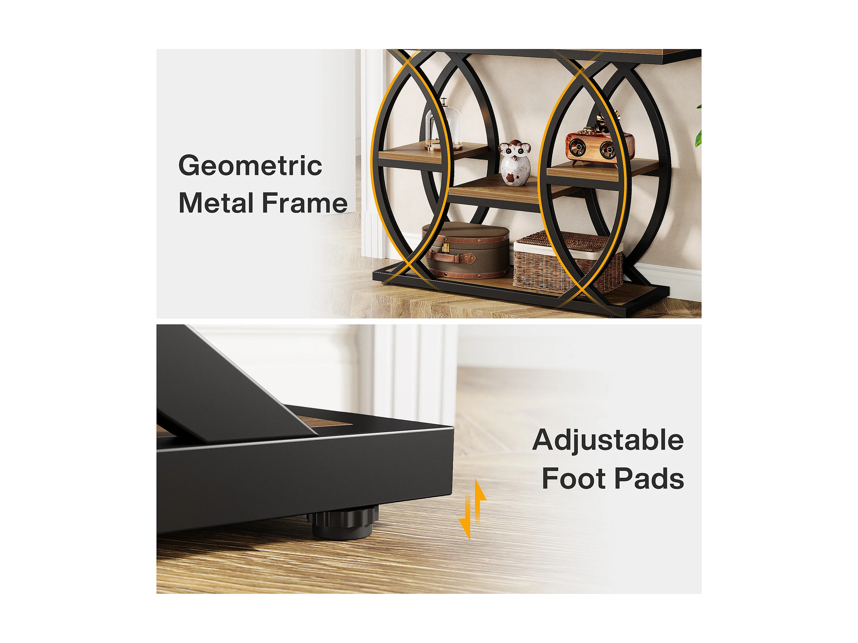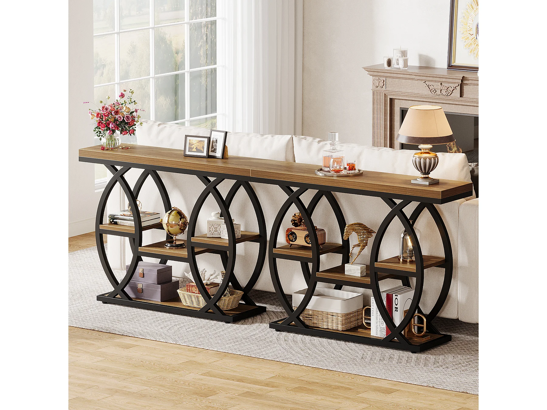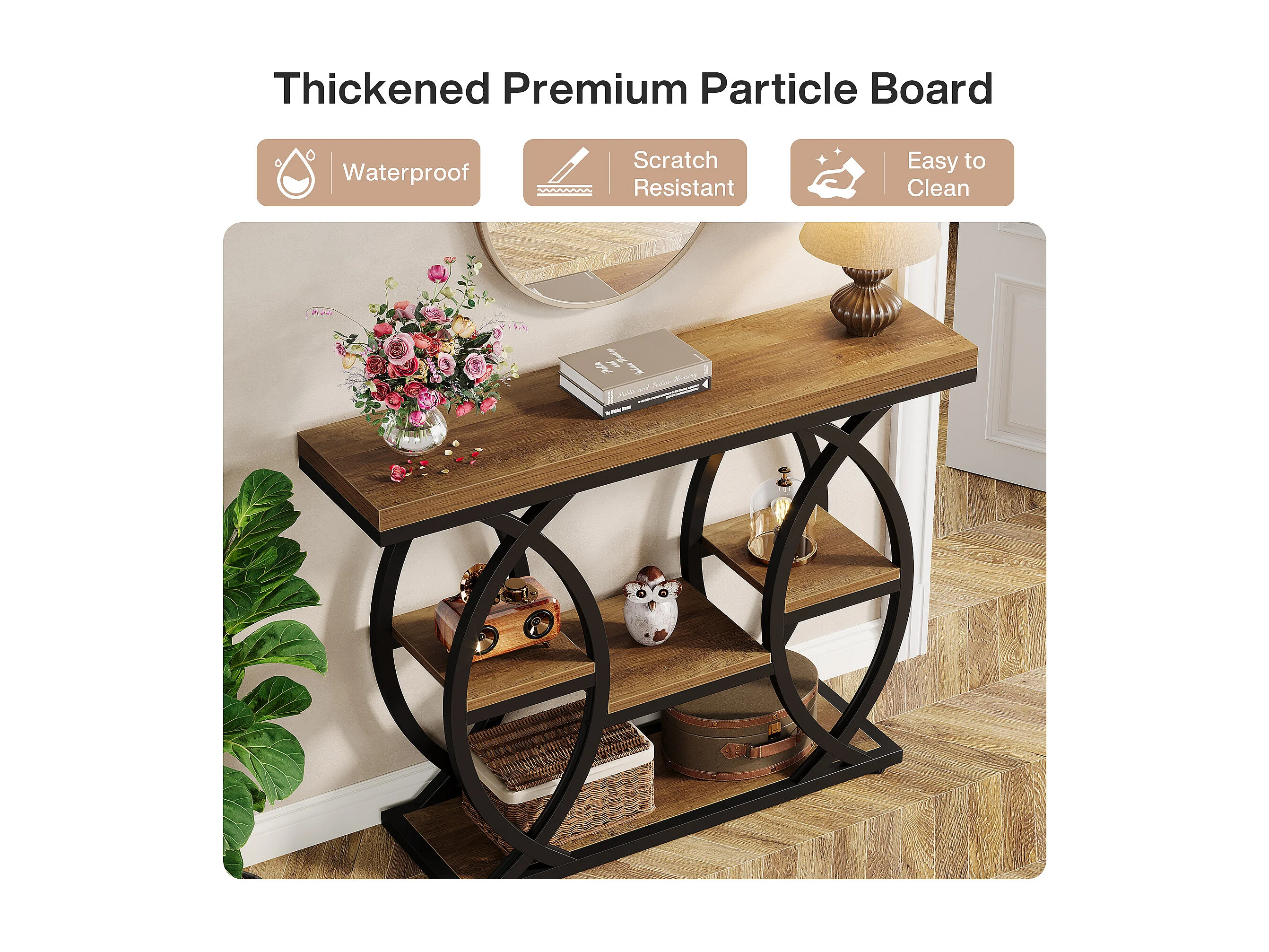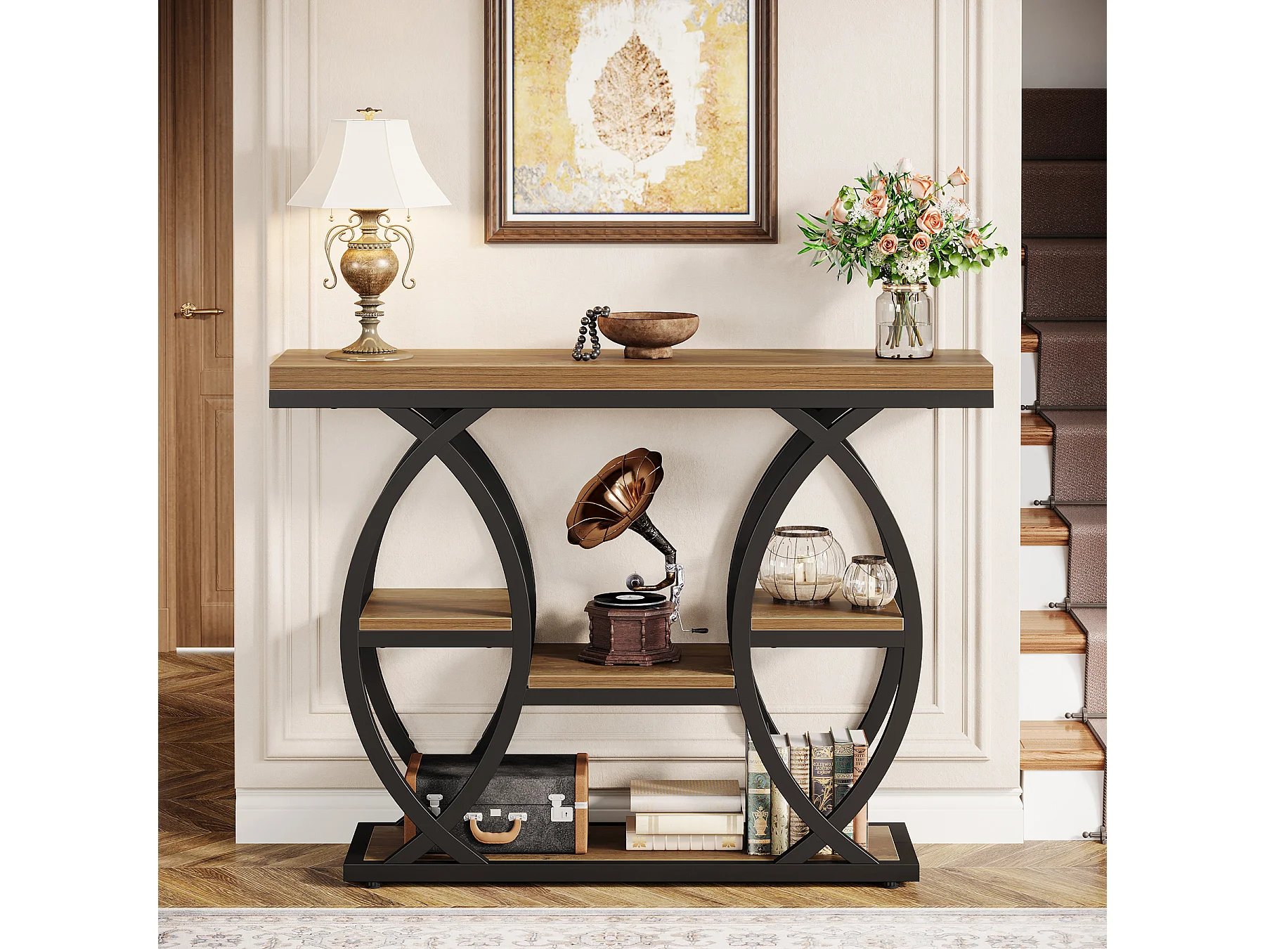 Table d'entrée industrielle à 4 niveaux avec étagères de rangement, tables d'appoint étroites