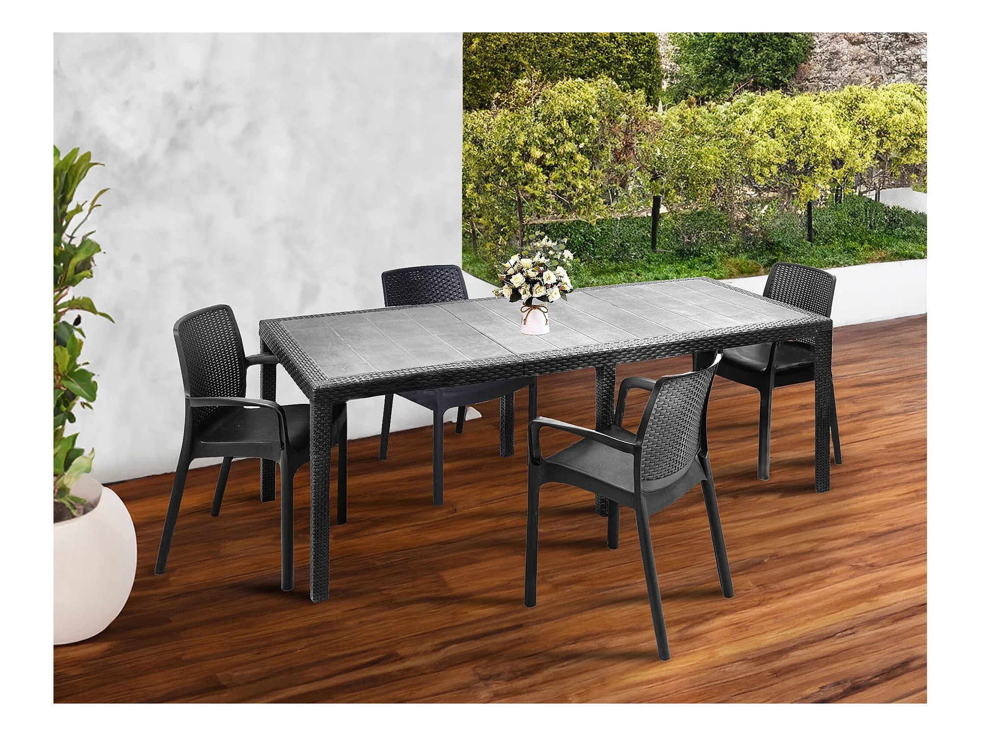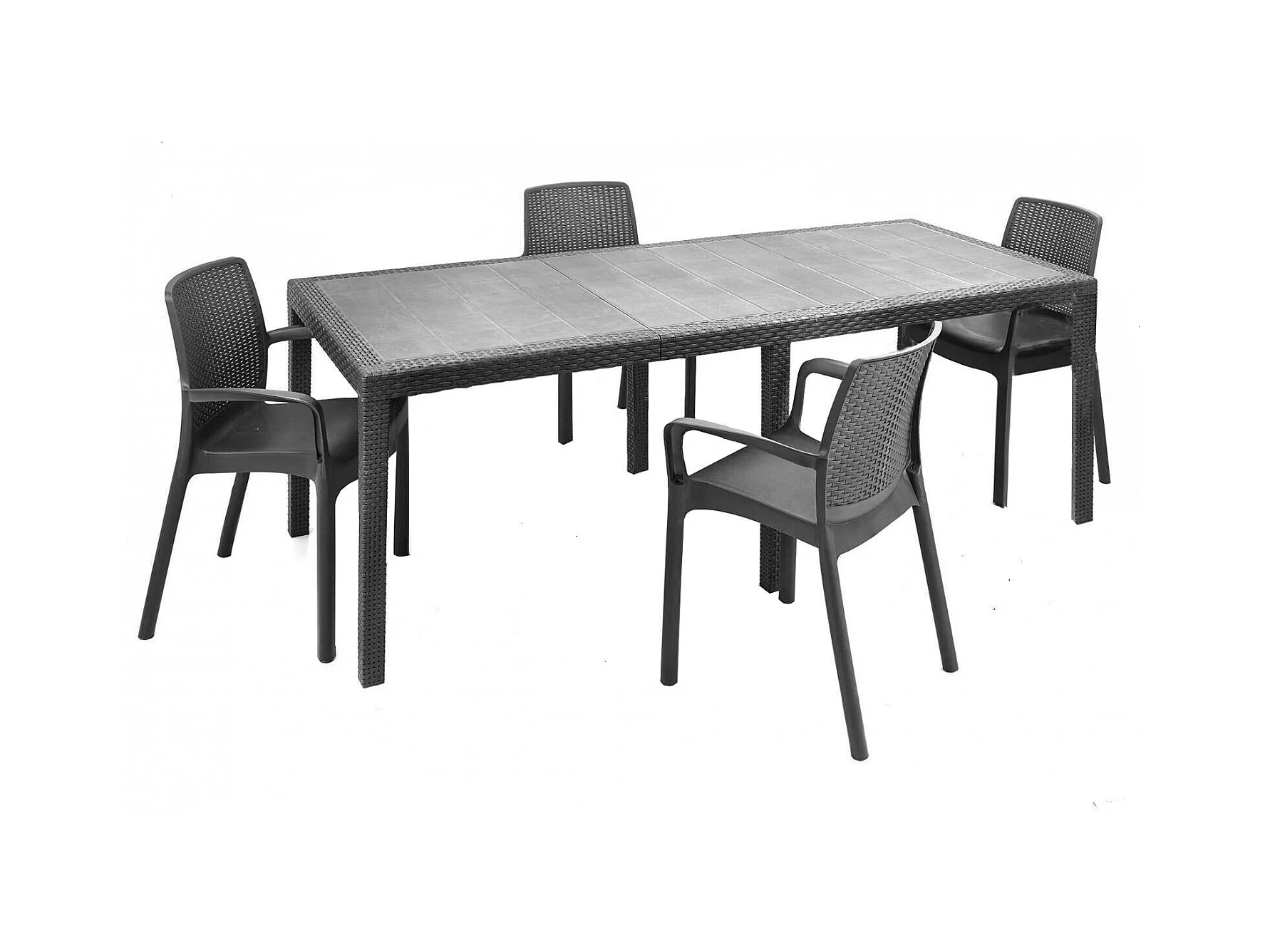 Table d'extérieur Manarola, Table à manger rectangulaire extensible avec 4 chaises incluses, Table et sièges de jardin effet rotin, 100% Made in Italy, Anthracite