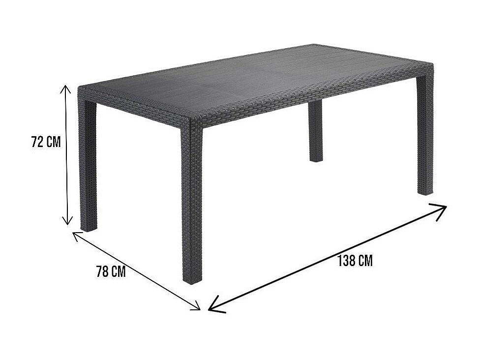 Table d'extérieur Imola, Étagère rectangulaire fixe, Table de jardin polyvalente effet rotin, 100% Made in Italy, 138x78h72 cm, Anthracite