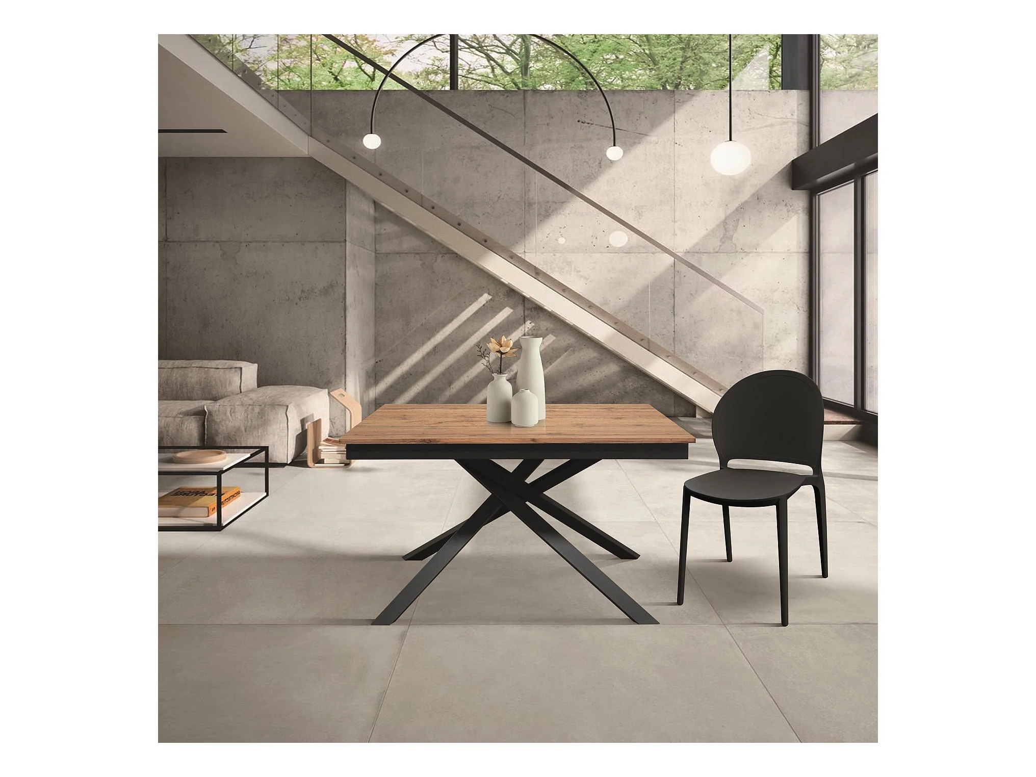 Table en bois, effet chêne, base anthracite, 140x80-190x80cm de long - VOLPAIA