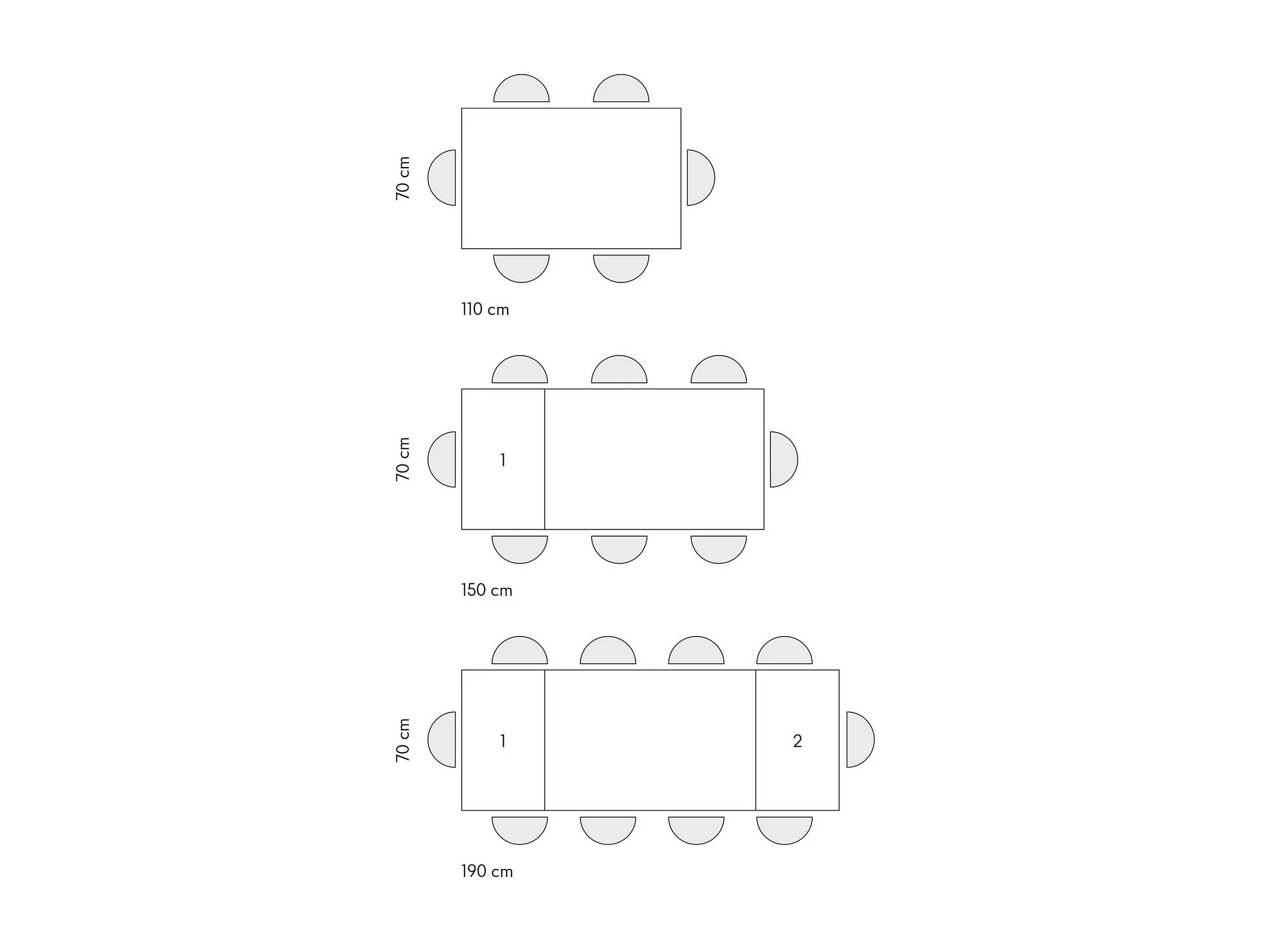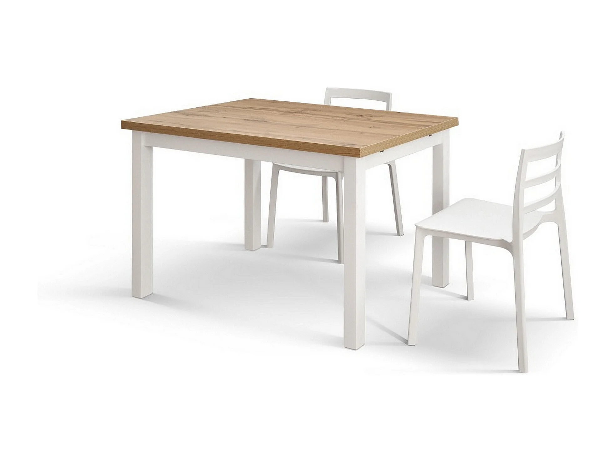 Table en bois effet chêne, pieds blancs, rallonge 110x70cm-190x70cm - POSITANO