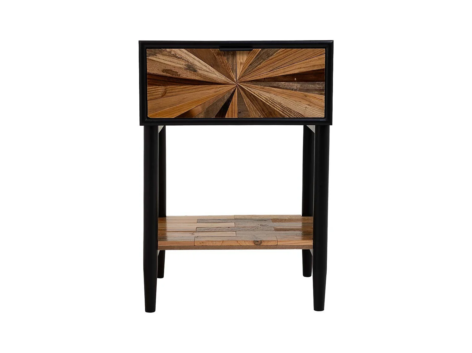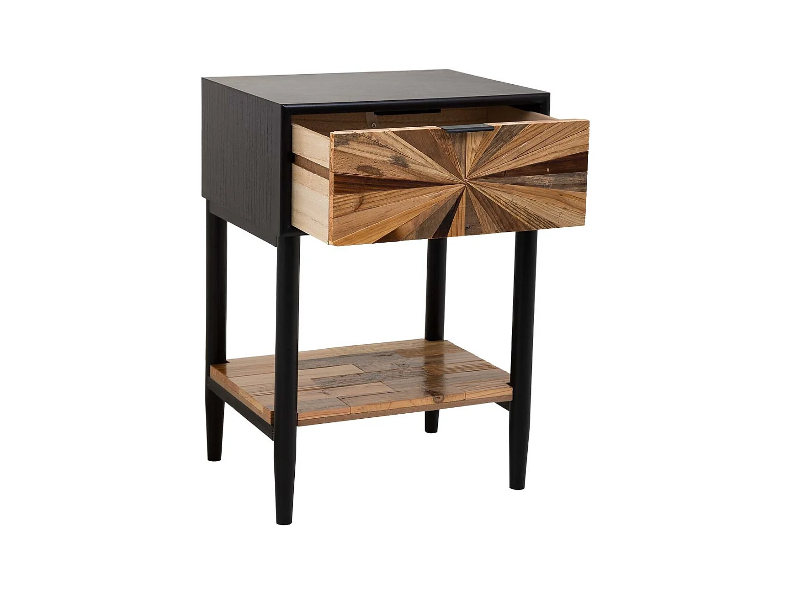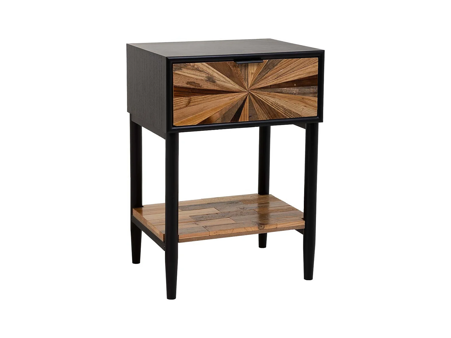 Table de nuit en bois et métal, 1 tiroir et 1 étagère marron 41x32x60