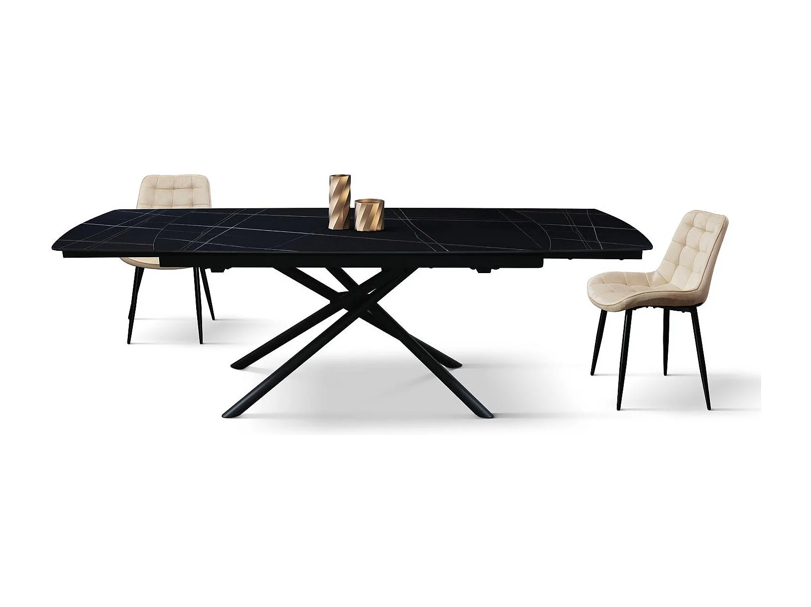 Table en céramique noire, piètement en métal noir, extensible 140x90 - 200x90 cm - BONIFACIO