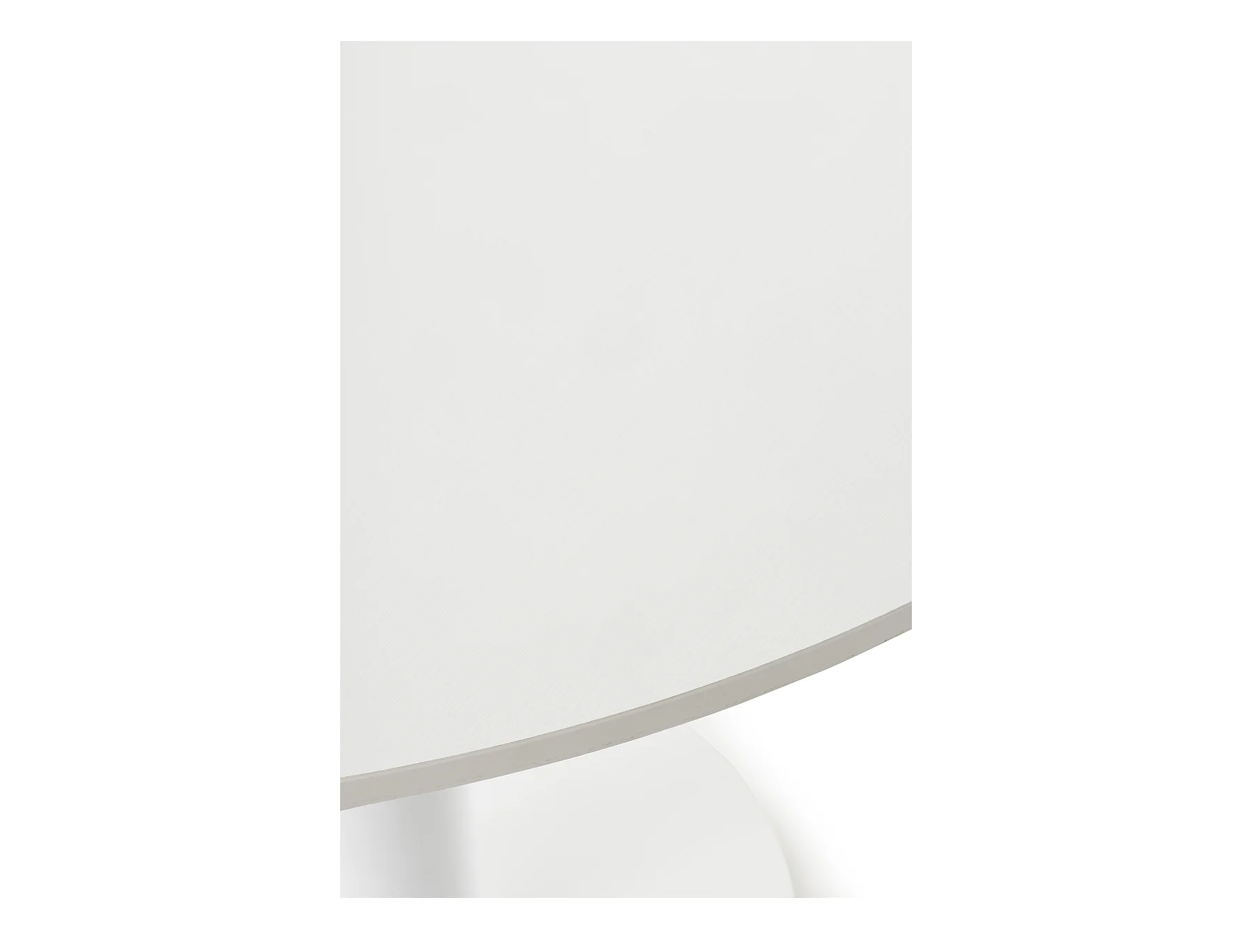 Table en mélamine blanche 100 diamètre, pied central en métal blanc
