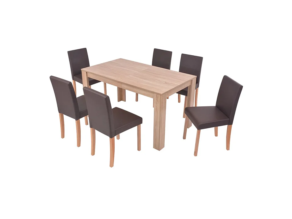 Table et chaises 7 pcs Cuir synthétique Chêne Marron
