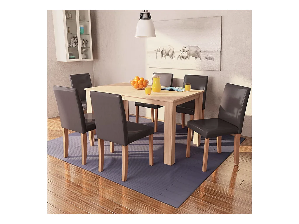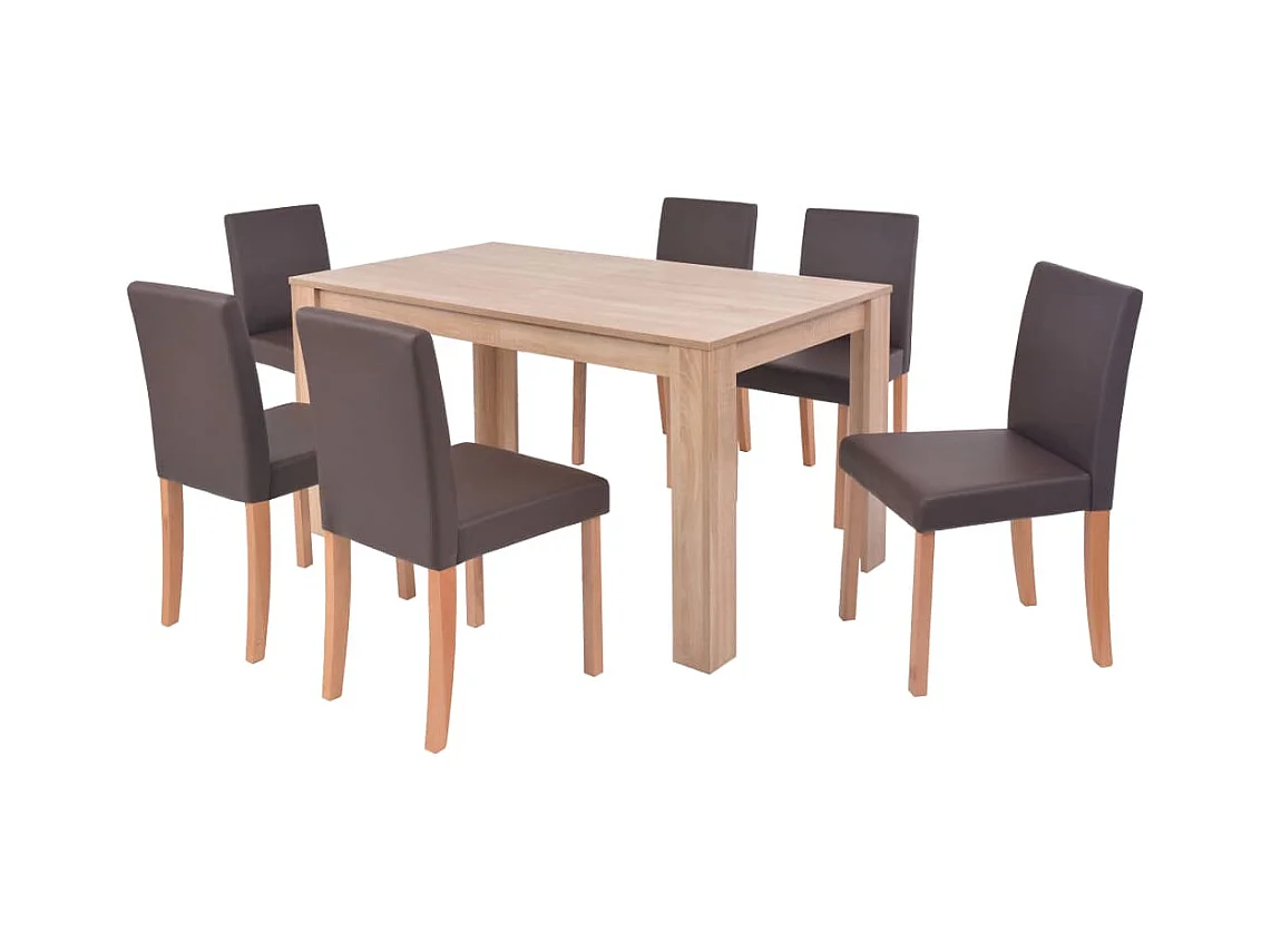 Table et chaises 7 pcs Cuir synthétique Chêne Marron