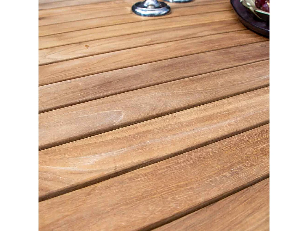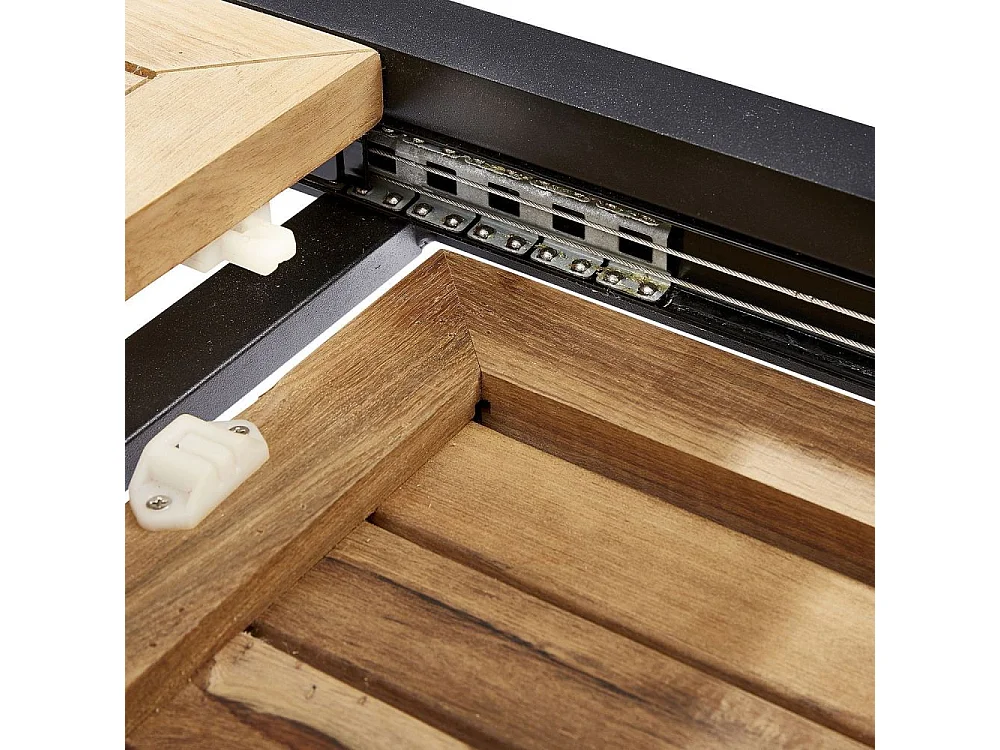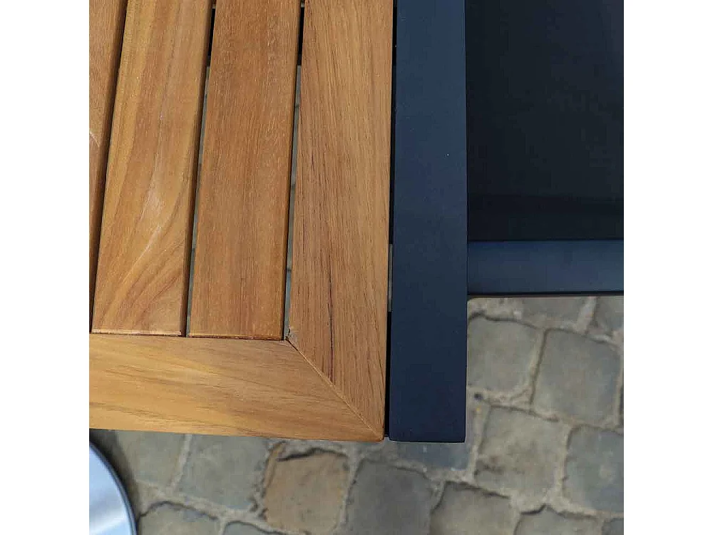 Ensemble BALITECK 6/10p en aluminium noir et plateau en Teck avec 6 fauteuils et 4 chaises pliantes en aluminium et textilène