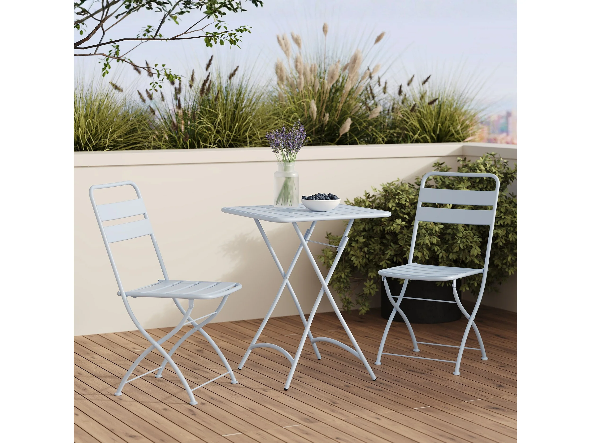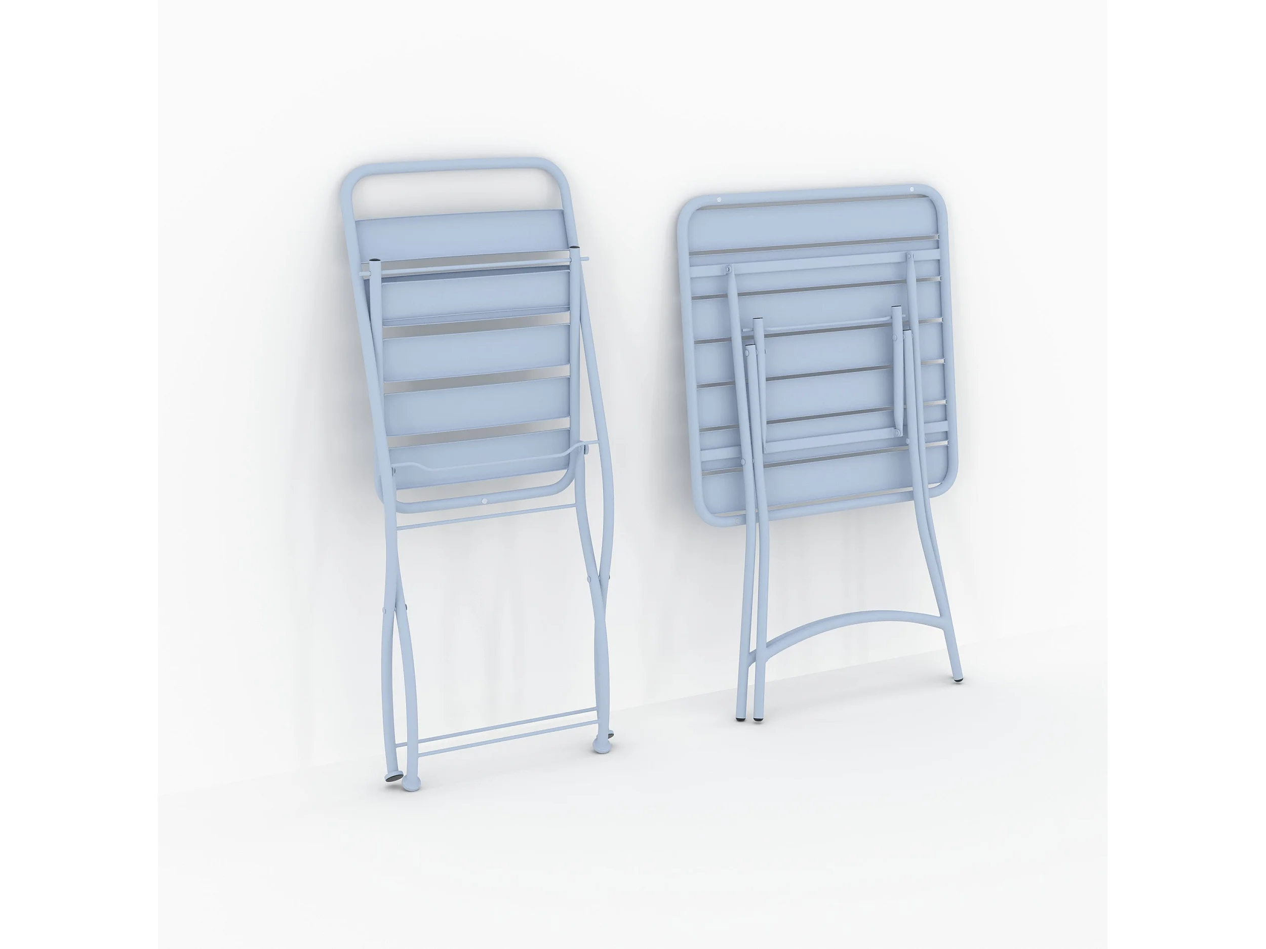 Table et chaises de jardin pliantes 2 personnes en métal bleu - Yumi