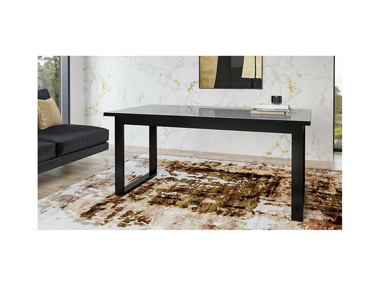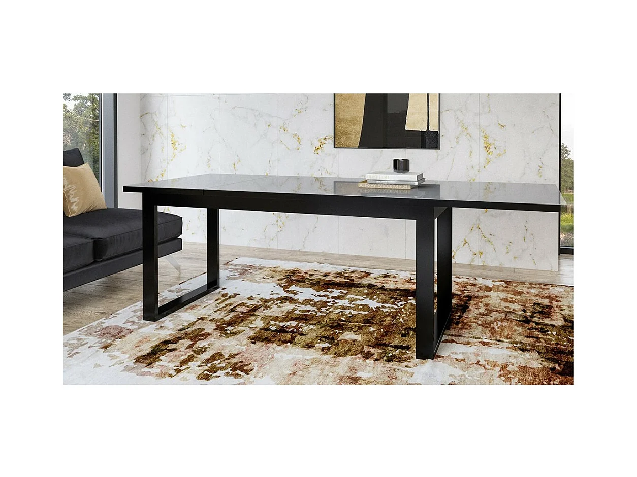 Table extensible 10 personnes pour salle à manger Collection ZANTE. Coloris noir et gris brillant.