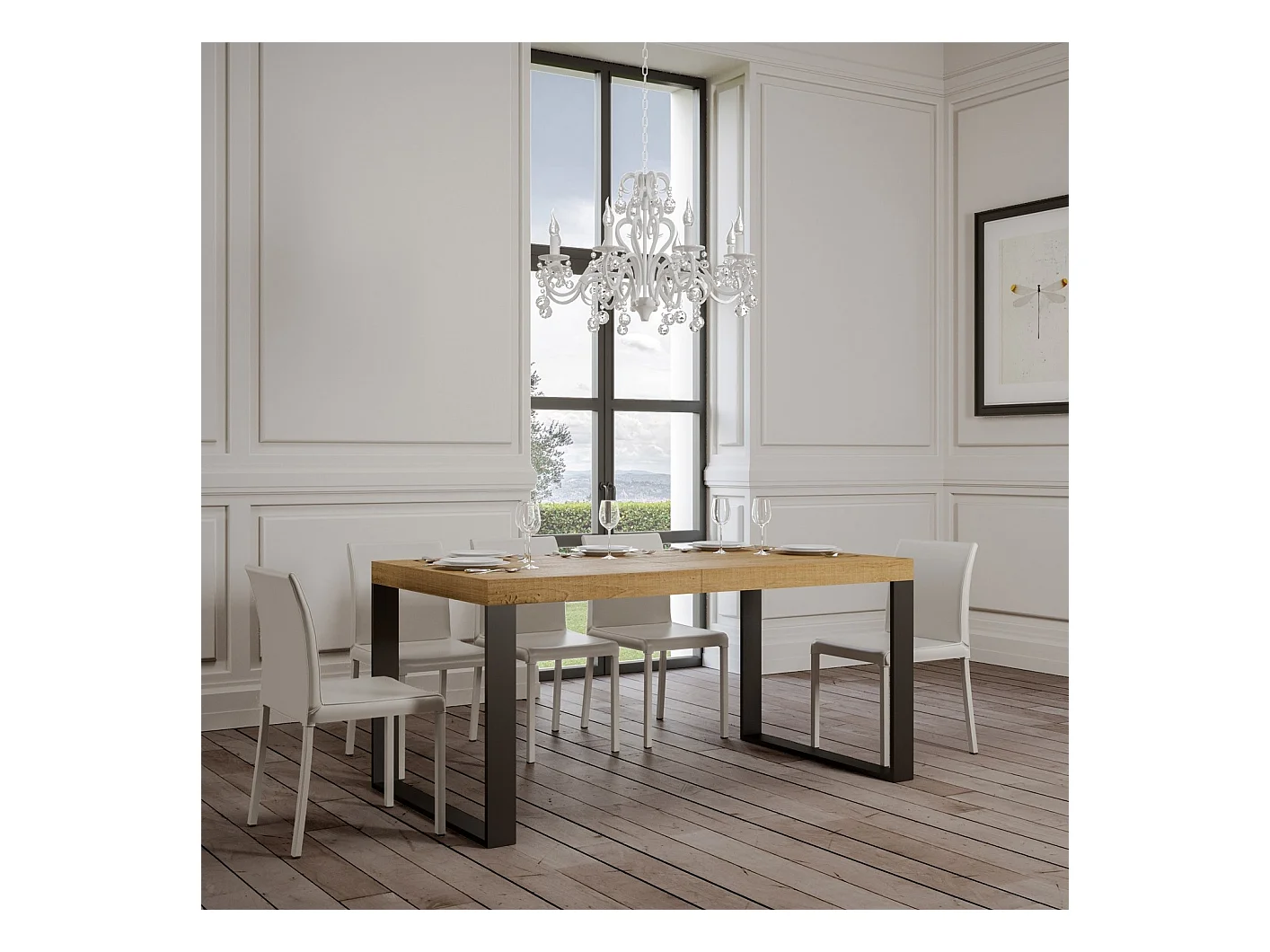 Table extensible 120/380x90 cm Tecno chêne naturel avec pieds anthracite