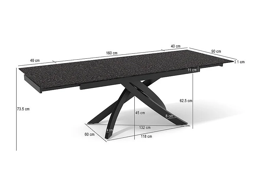 Table extensible 160 à 240 cm verre bullé gris anthracite pied entrecroisé - ATLANTA 11