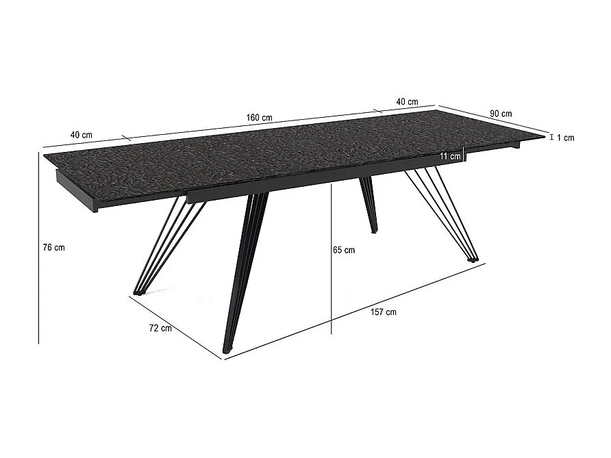 Table extensible 160 à 240 cm verre bullé gris anthracite pieds filaires - ATLANTA 01