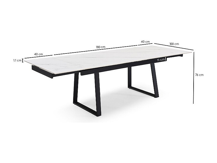 Table extensible 180/260 cm céramique blanc marbré pieds luge - NEVADA 02