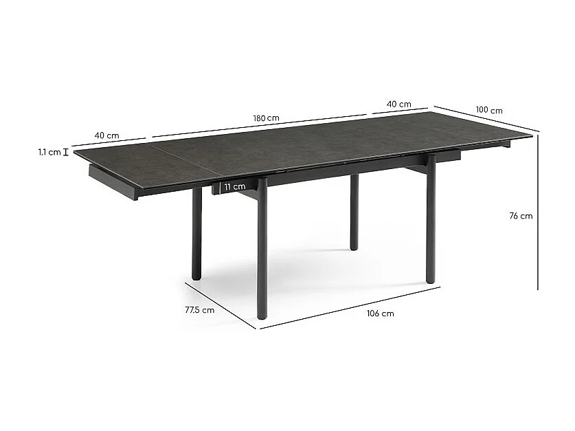 Table extensible 180 à 260 cm céramique gris anthracite pieds droits - UTAH 09