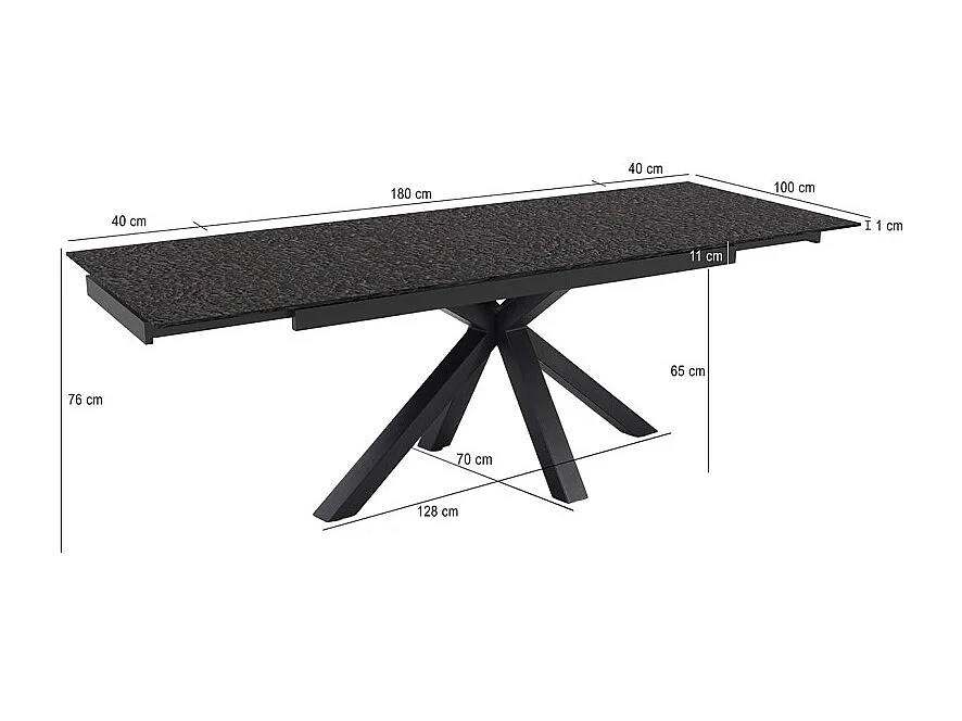 Table extensible 180 à 260 cm verre bullé gris anthracite pieds central croix - ATLANTA 04