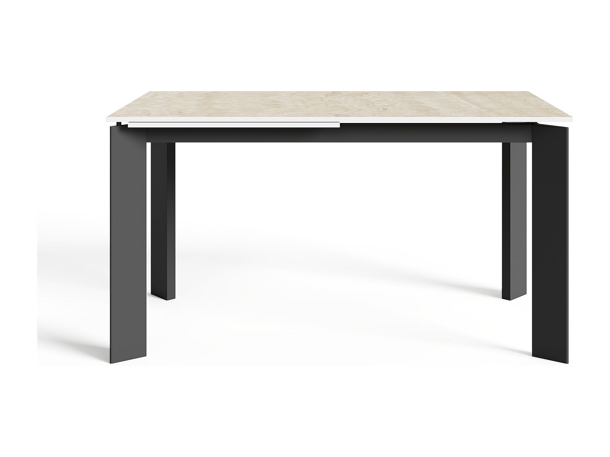 Table extensible 6-8 personnes aspect travertin et pieds noirs 140cm LINEA