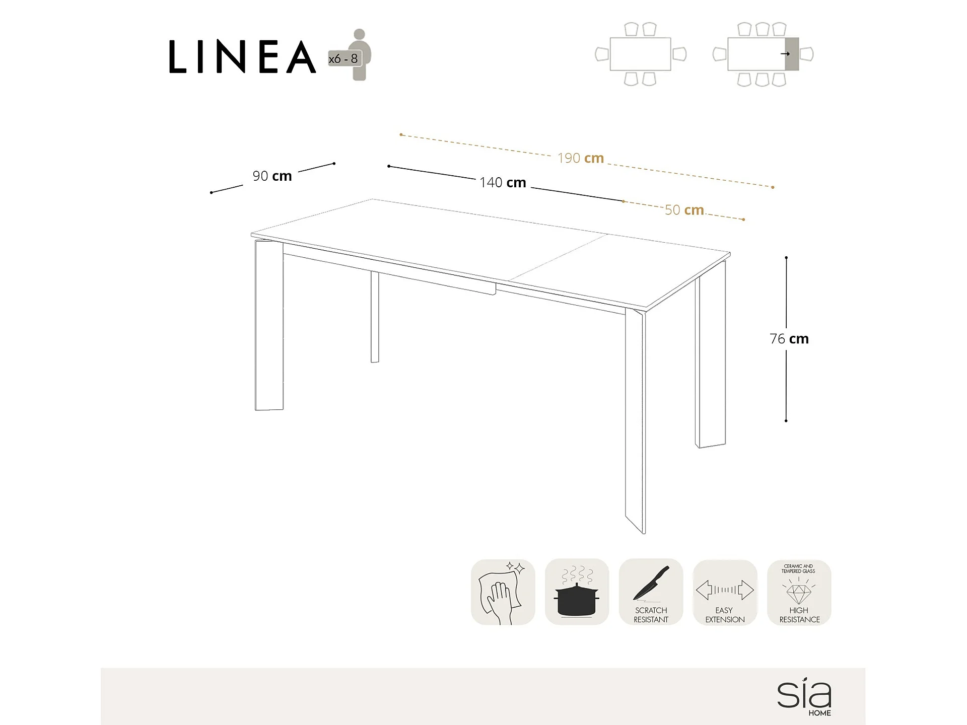 Table extensible 6-8 personnes céramique effet marbre noir 140cm LINEA