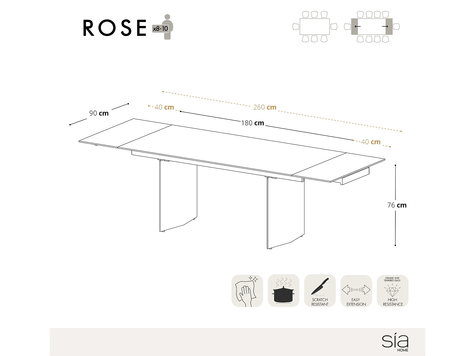 Table extensible 8-10 personnes céramique effet marbre blanc180cm ROSE