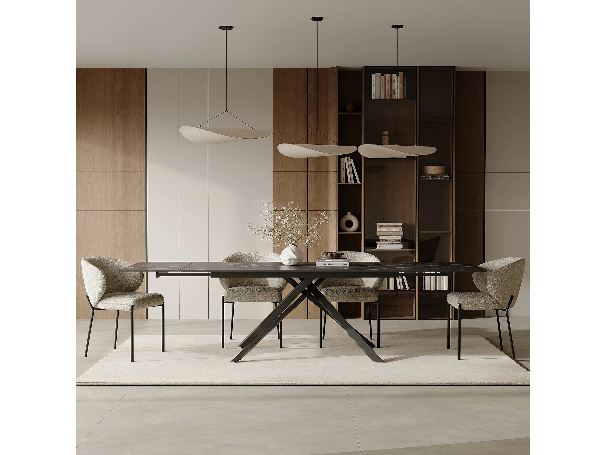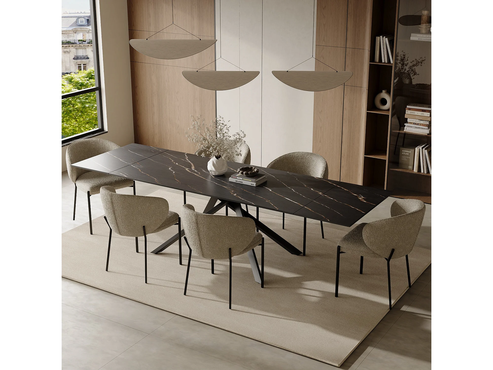 Table extensible 8-10 personnes céramique effet marbre noir 180cm GINKO