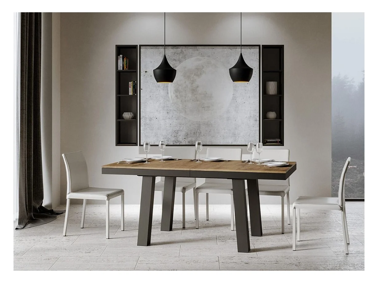 Table extensible 8 à 20 places L 180 à 440cm bois foncé et cadre métal anthracite Bidy