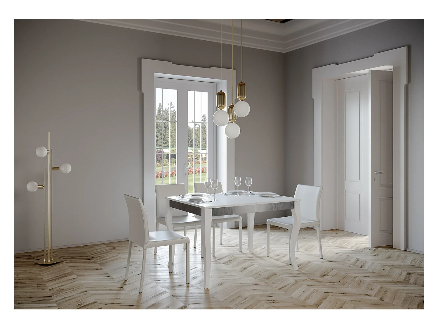 Table extensible 90x120/224 cm Olanda Iron Frêne Blanc cadre gris