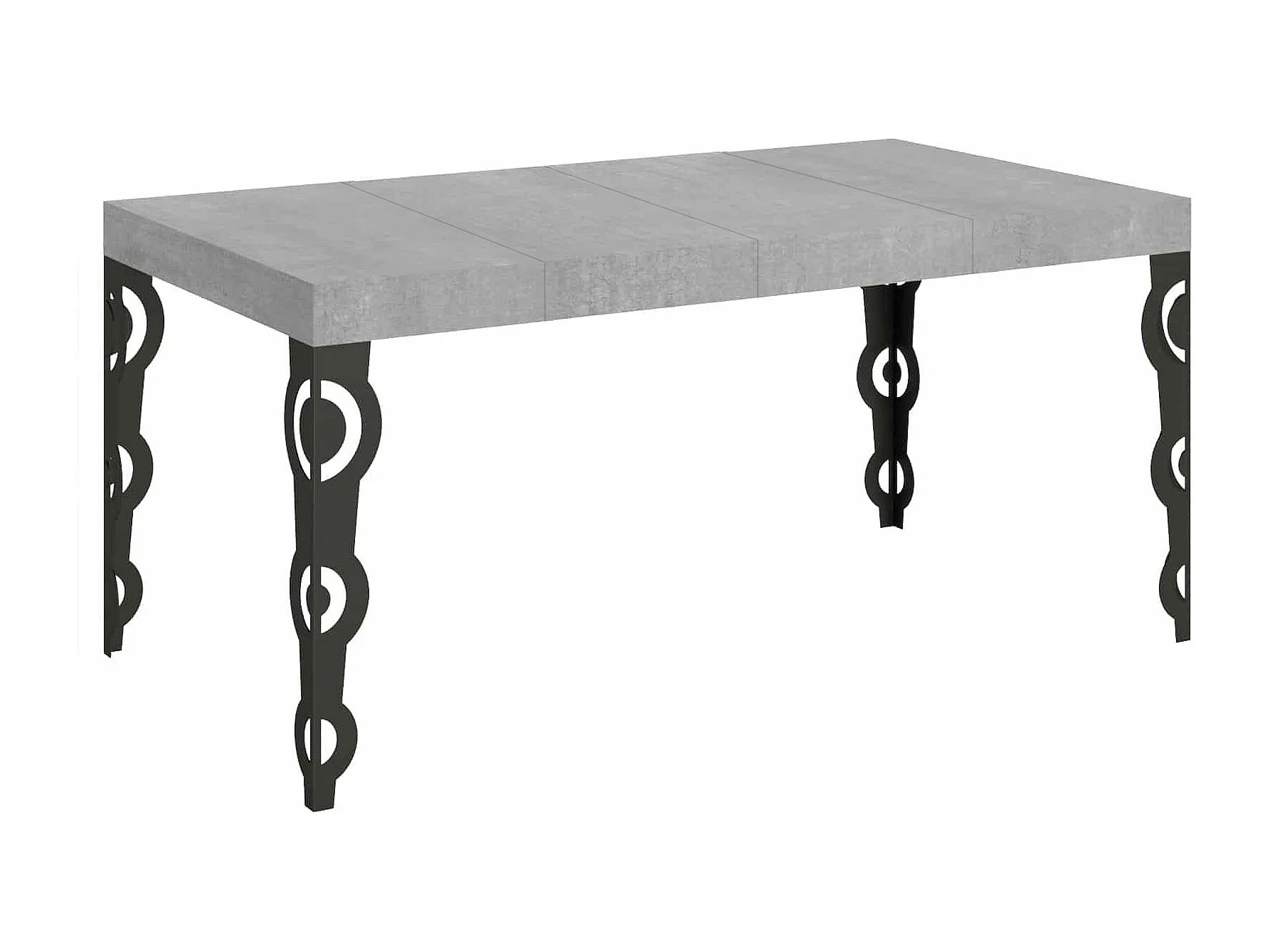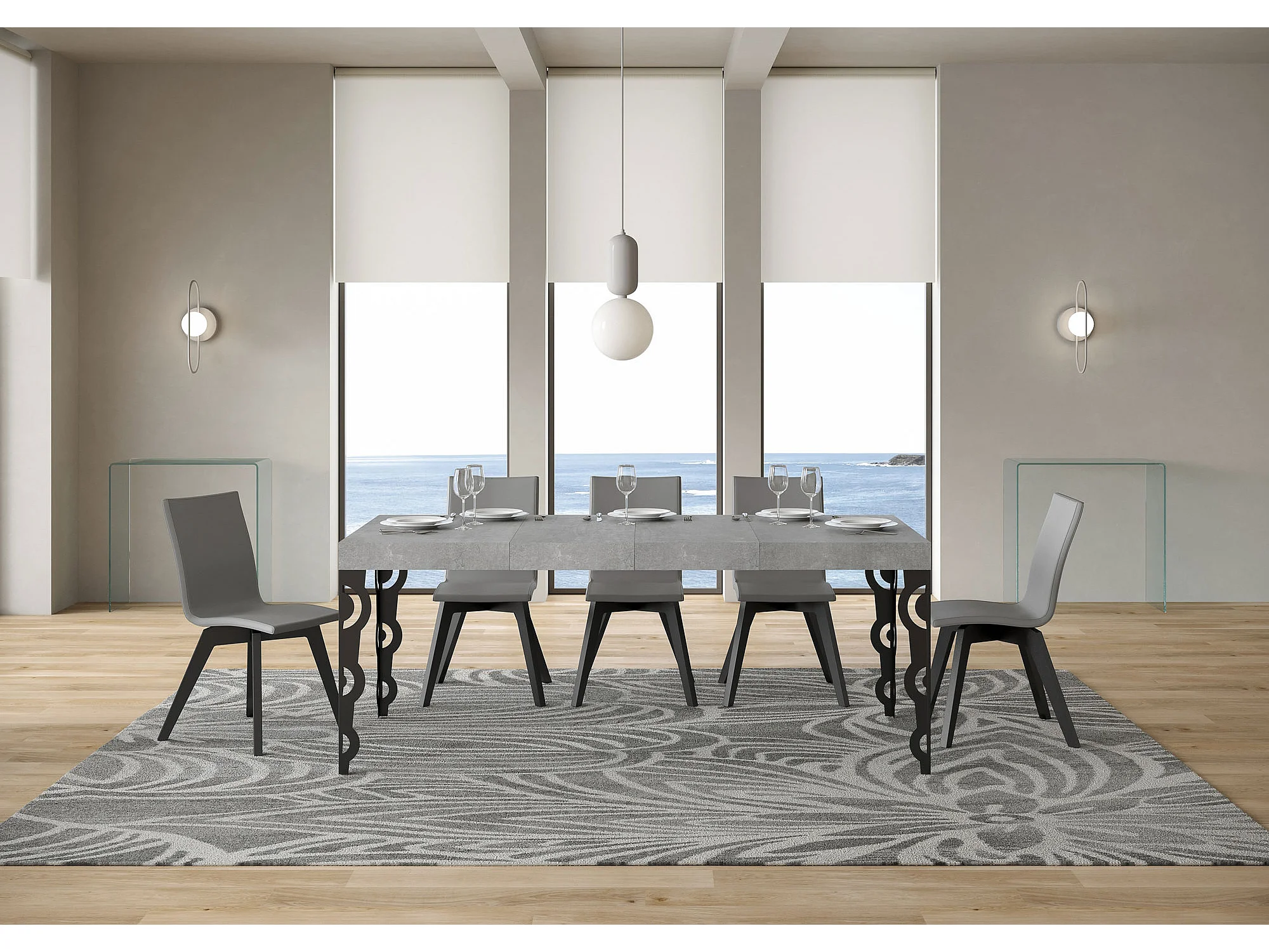 Table extensible 90x130/390 cm Karamay Premium Gris Béton cadre Anthracite