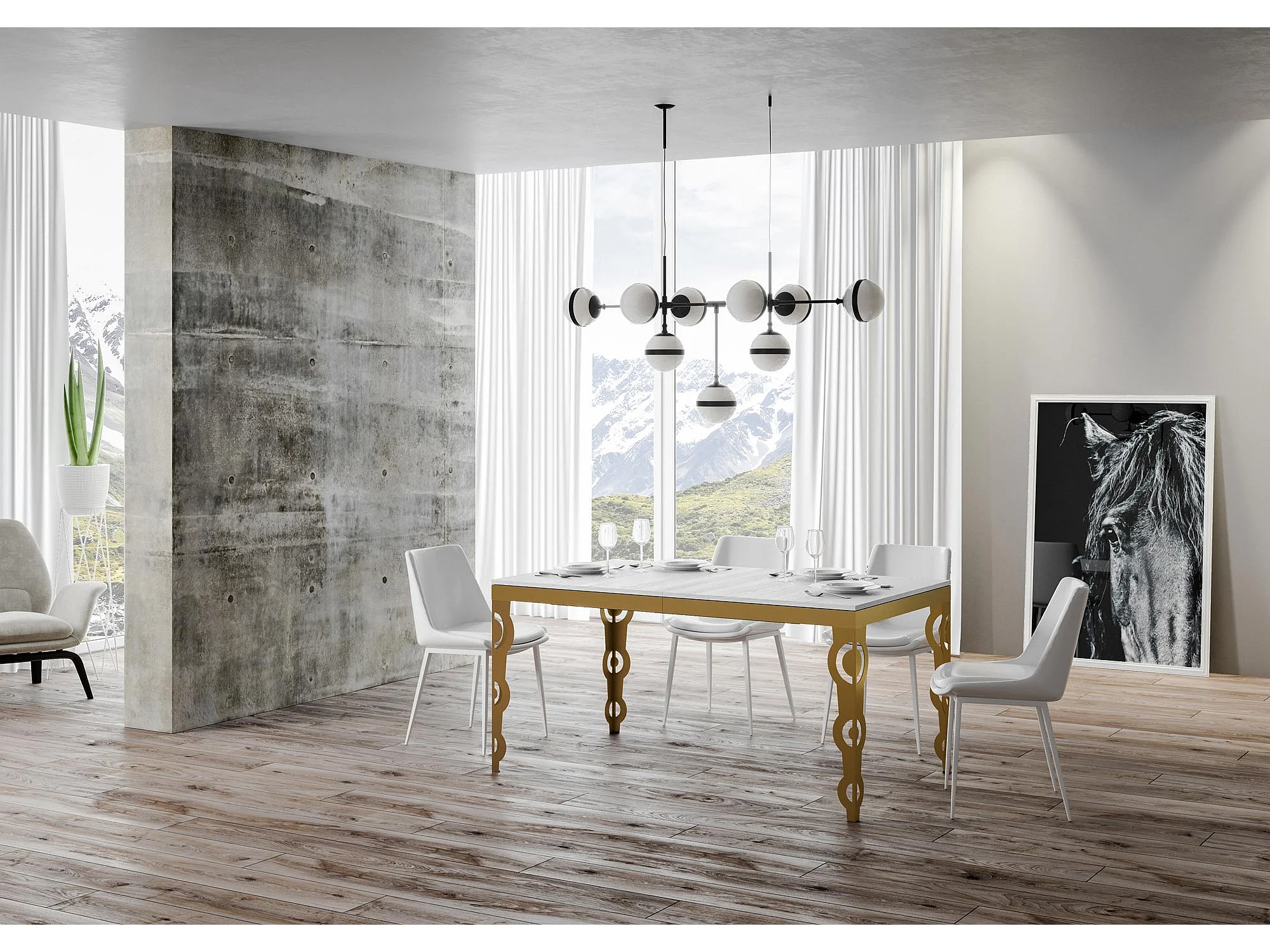Table extensible 90x160/264 cm Karamay Evolution Frêne Blanc cadre or