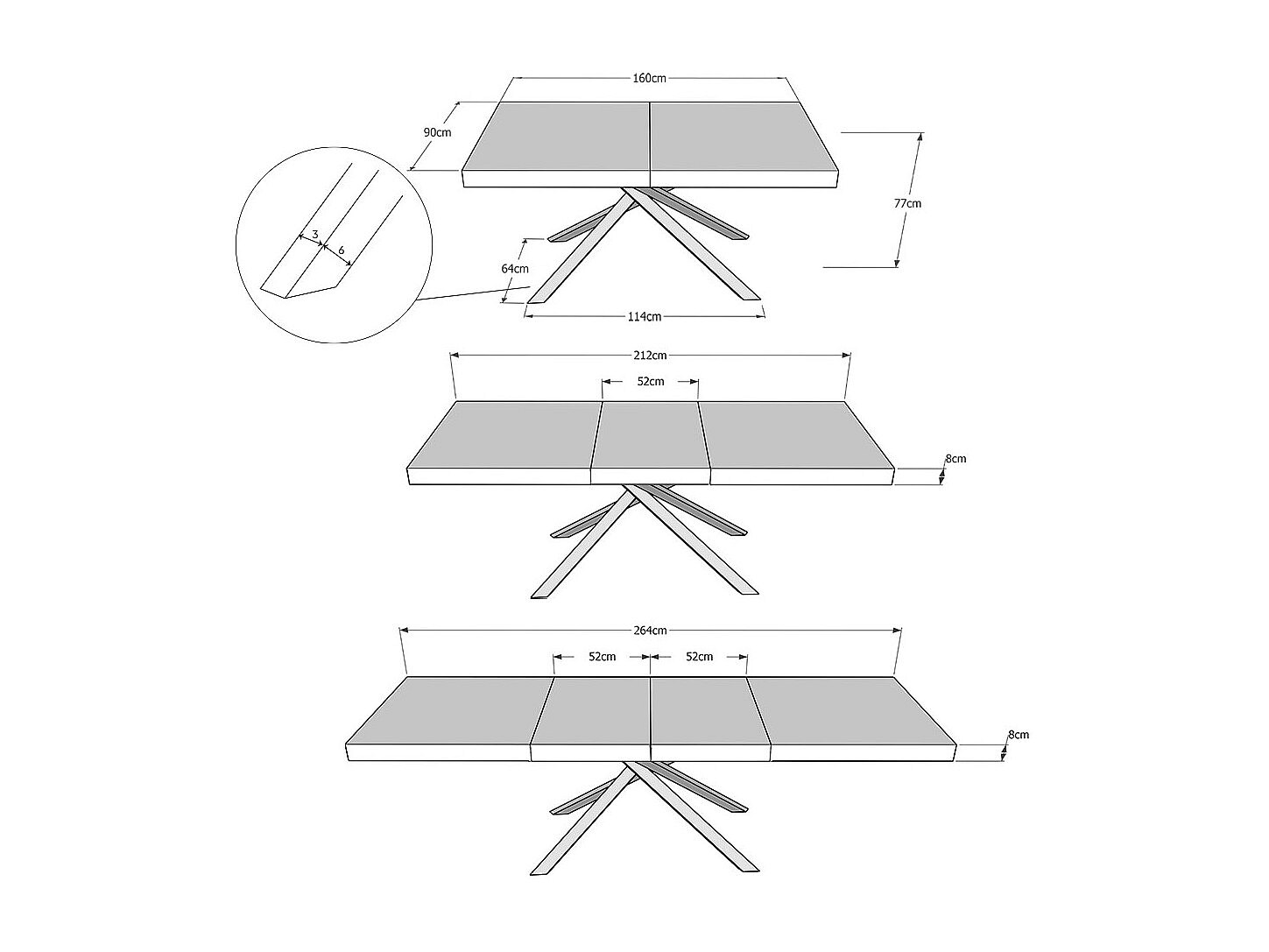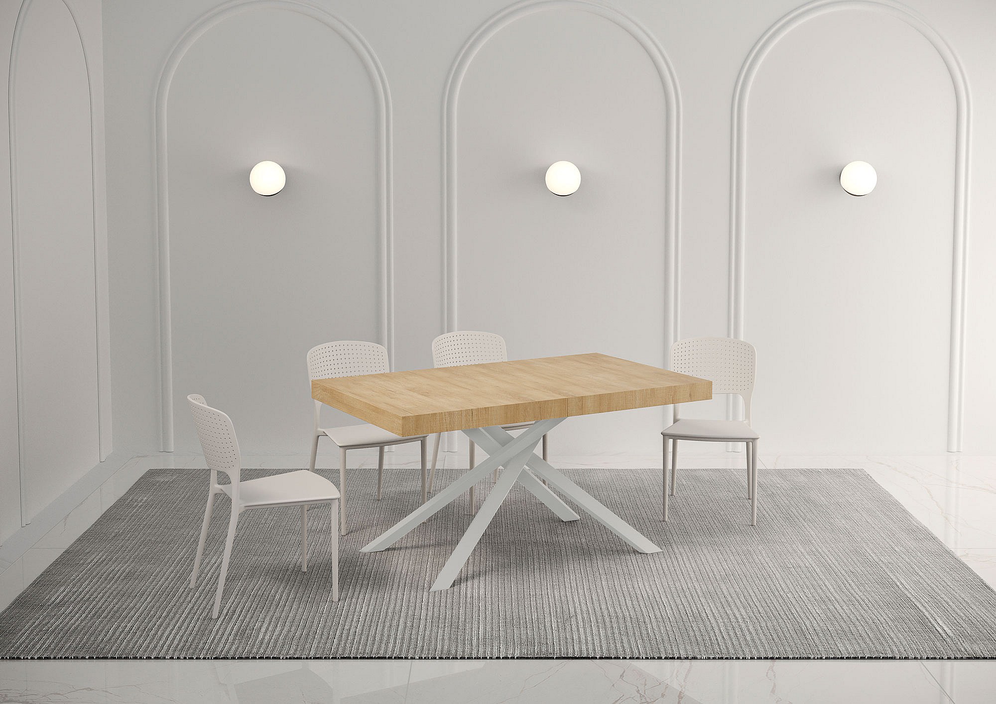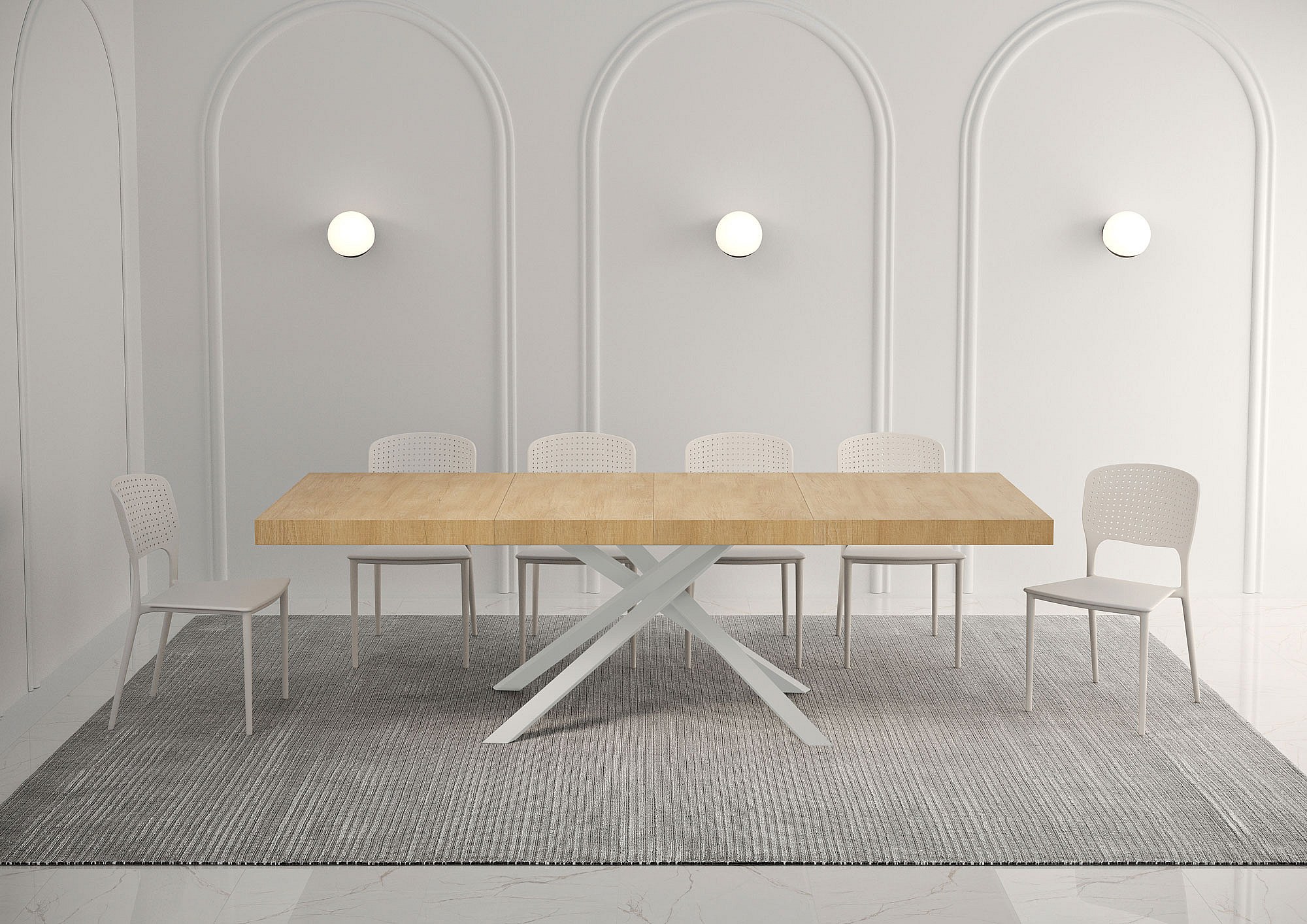 Table extensible 90x160/264 cm Karida Premium chêne nature pieds blanc