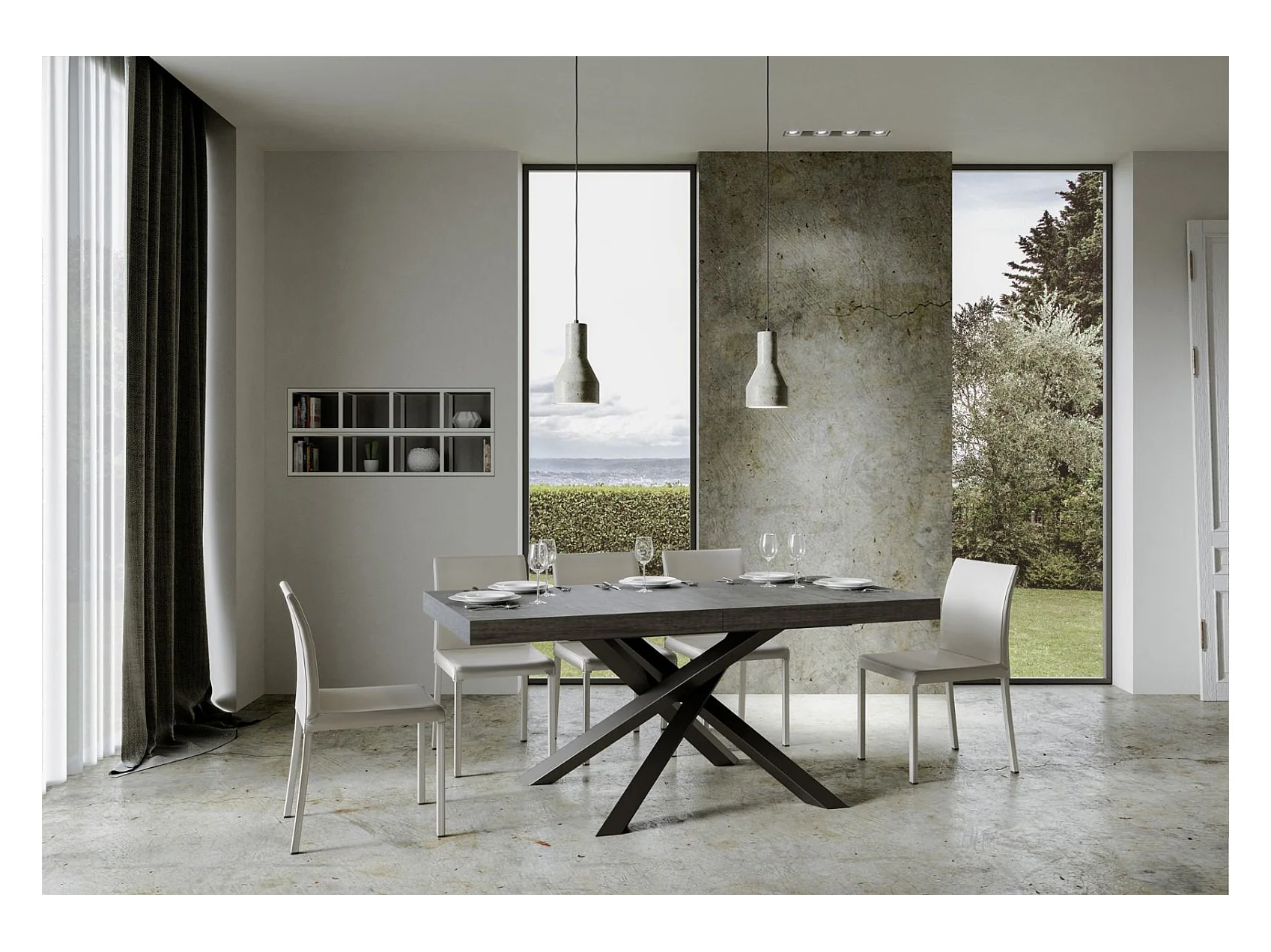 Table extensible 90x200/304 cm Volantis Premium Gris Béton cadre Anthracite
