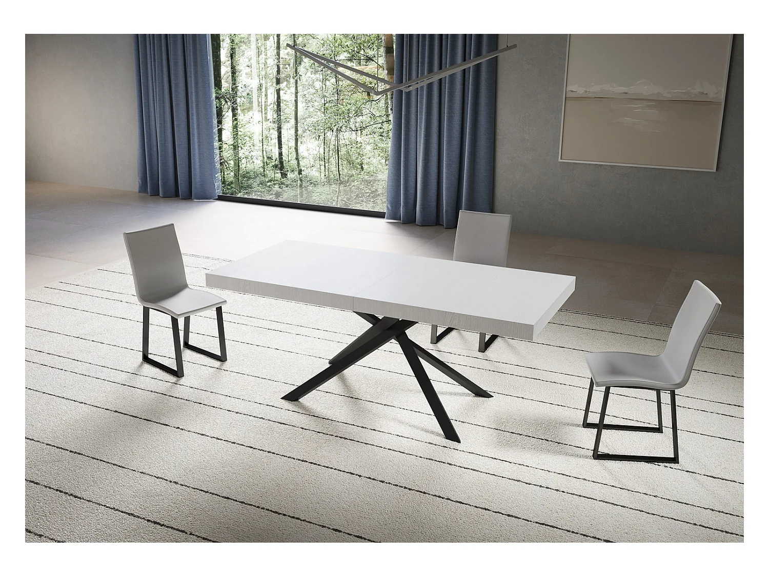 Table extensible 90x200/460 cm Niket Frêne Blanc pieds Anthracite