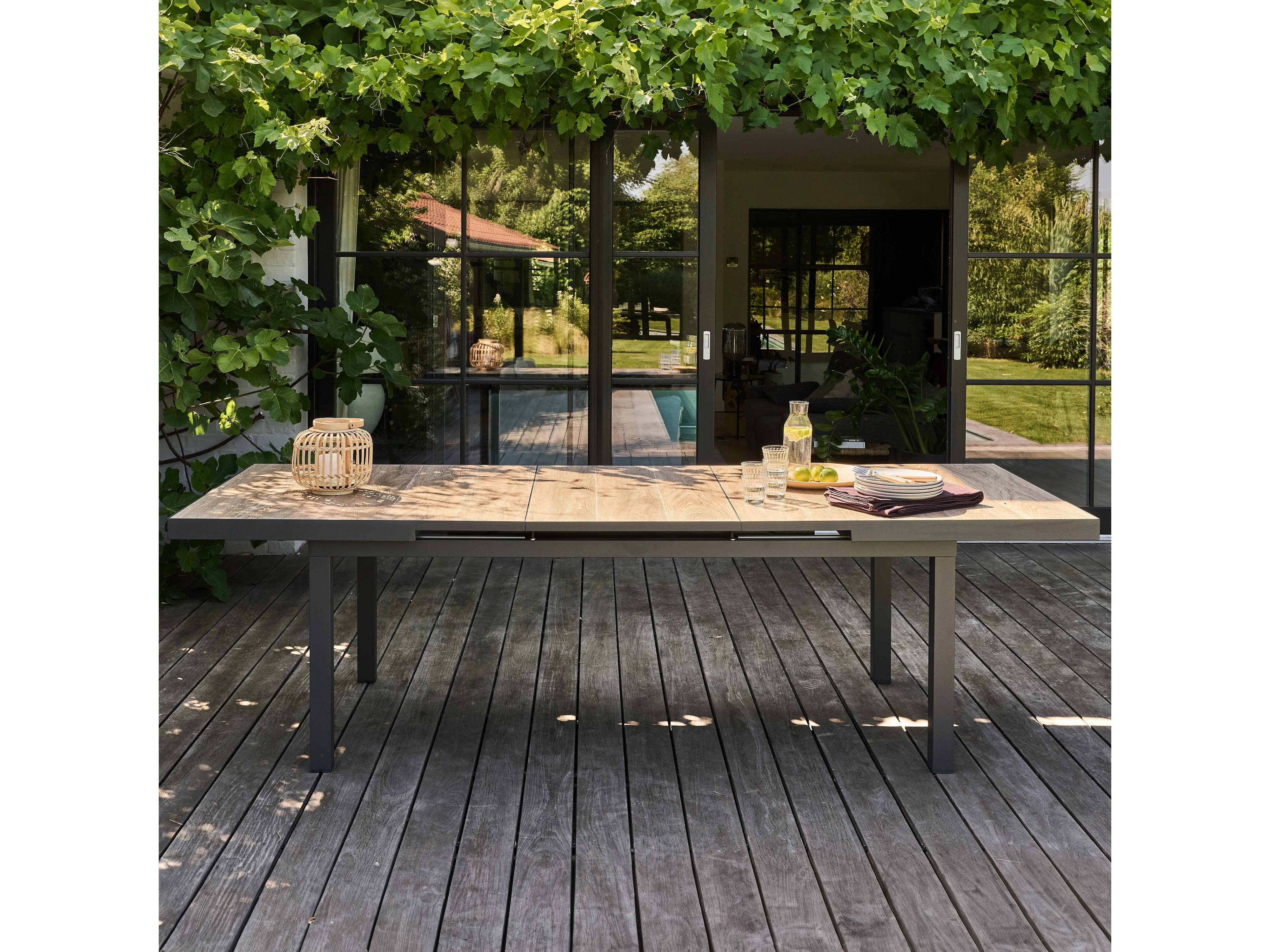 Table extensible aluminium et céramique imitation bois - Tivoli