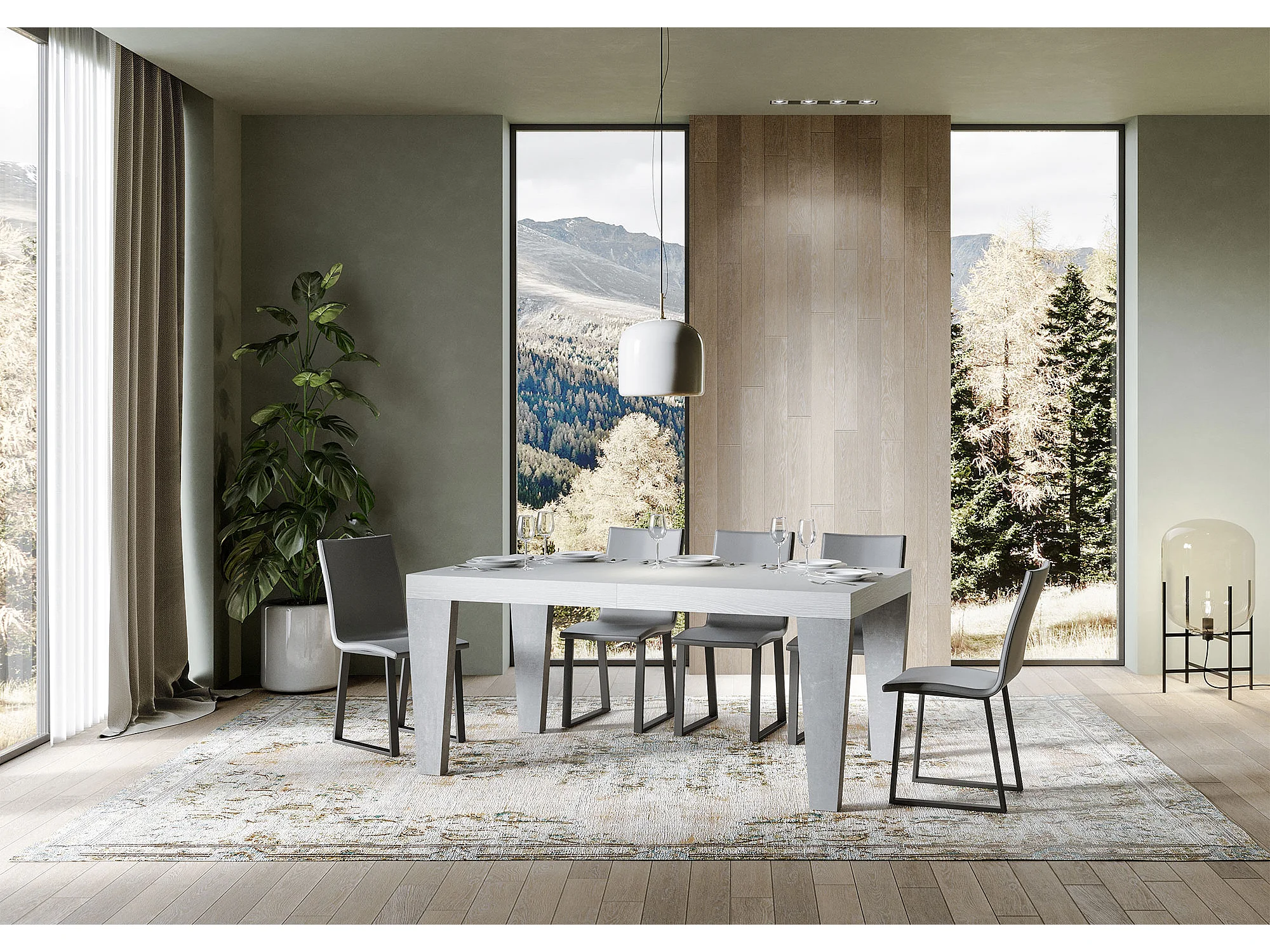 Table extensible blanche et pieds bois gris béton 6 à 20 places Kristo 180 à 440cm-4 pieds