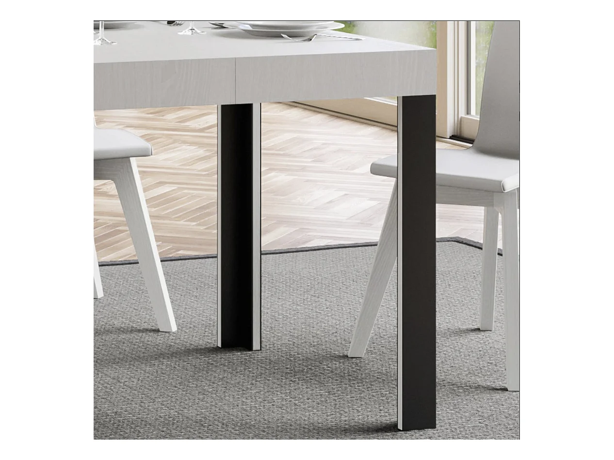 Table extensible bois pieds bois et acier anthracite Liva-Couleur Blanc-Sur roulettes-160 à 264cm