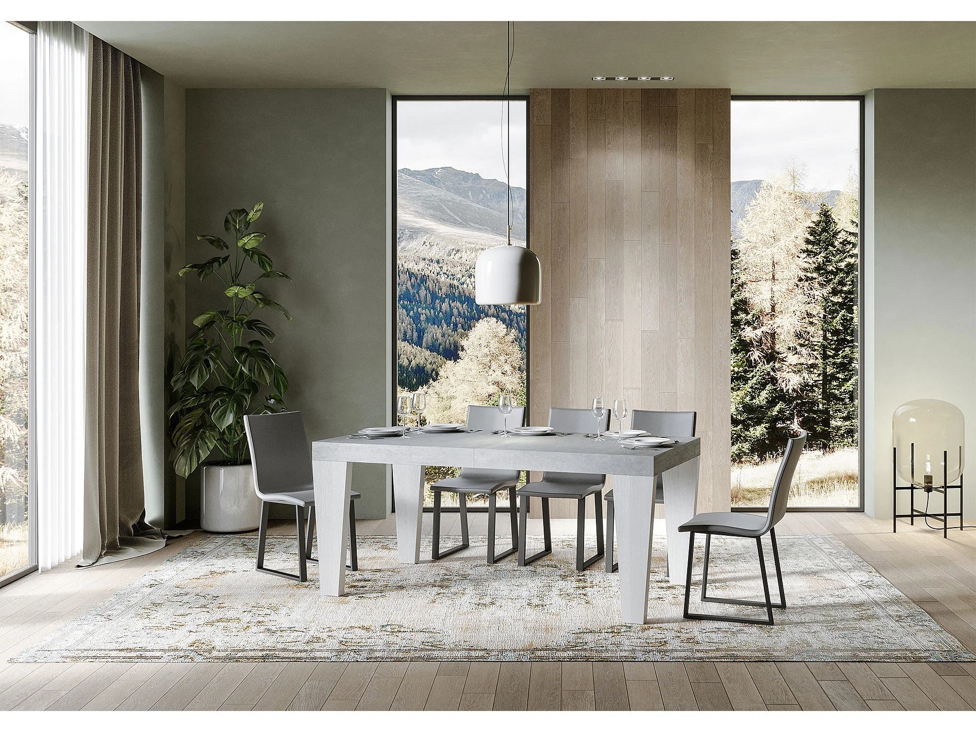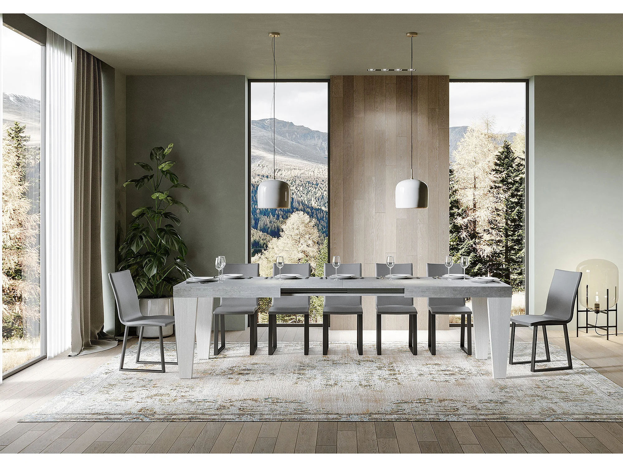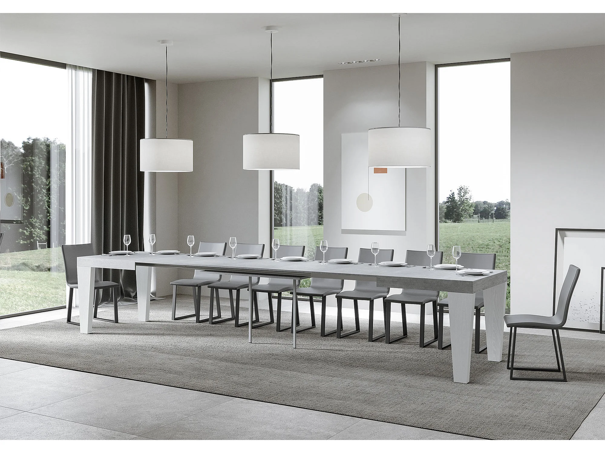 Table extensible bois gris béton et pieds bois blanc 6 à 20 places Kristo 160 à 420cm-4 pieds