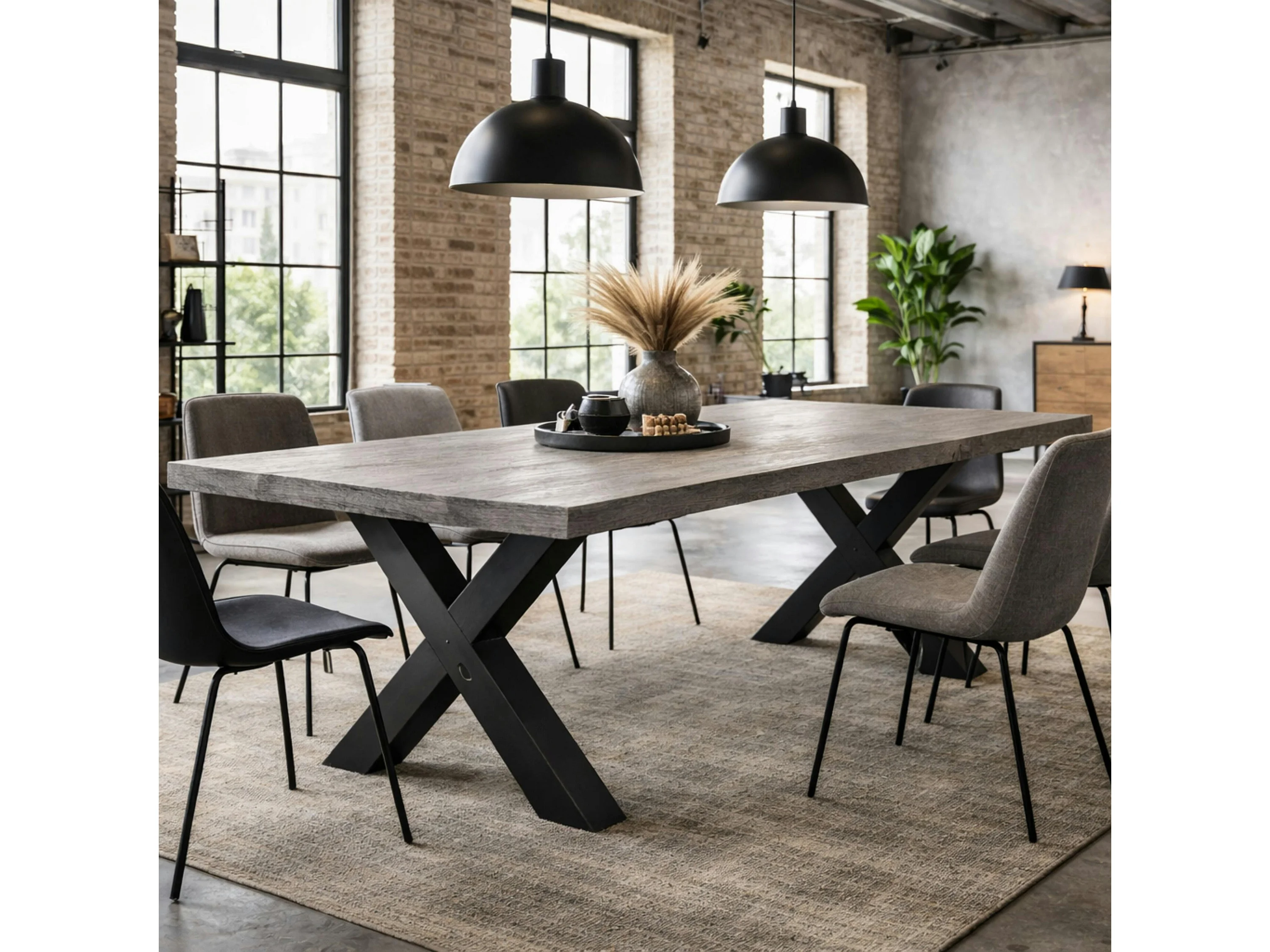 Table extensible bois grisé bords droits pieds en X 180 cm PALERME
