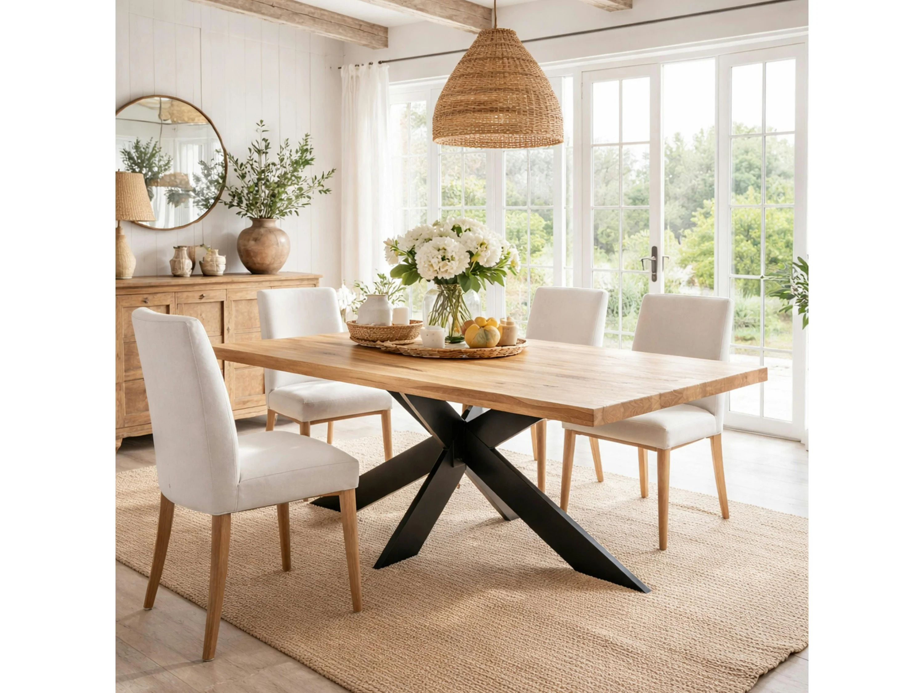 Table extensible bois huilé bords droits pied central 200 cm PALERME