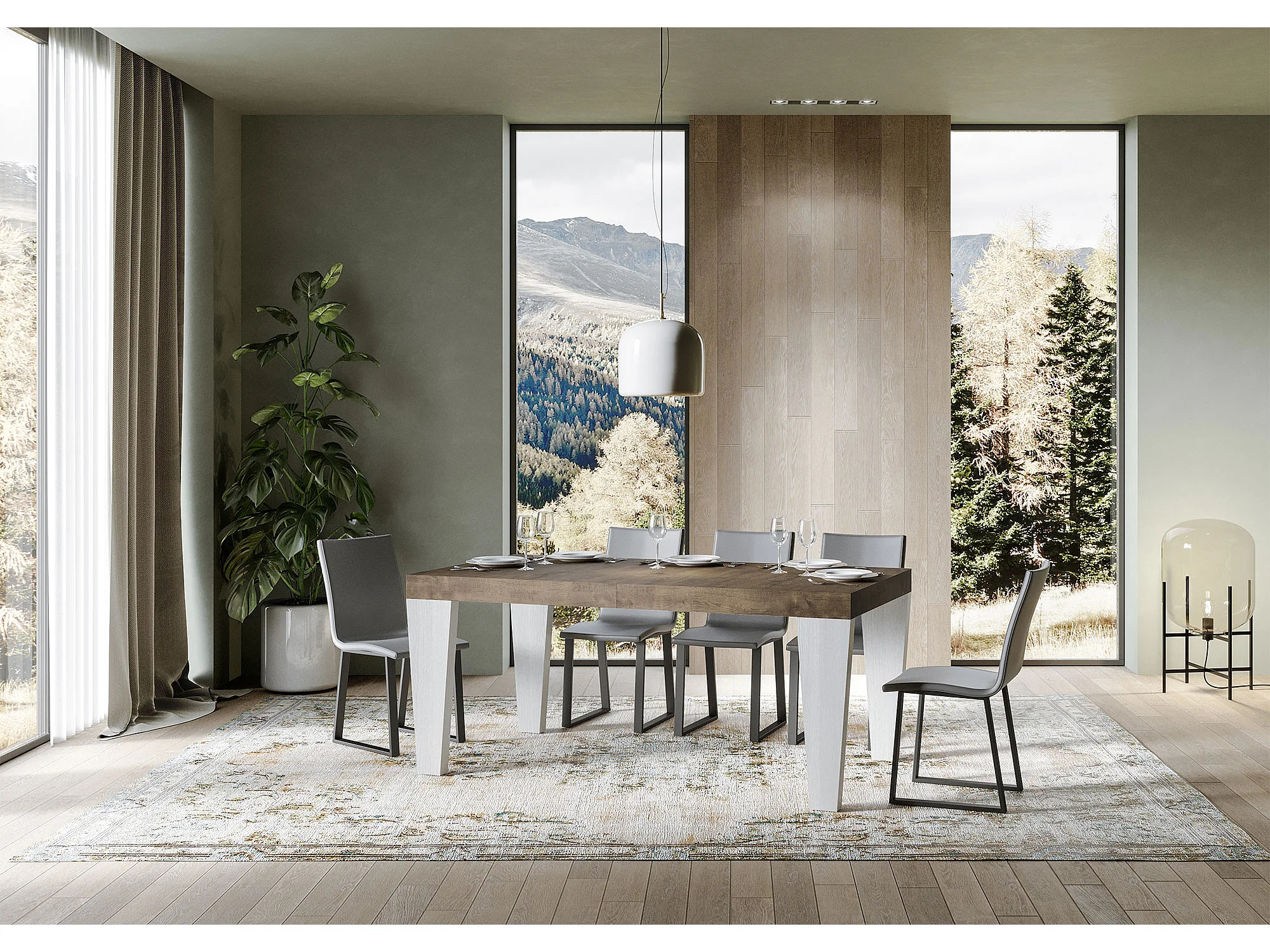 Table extensible bois noyer et pieds bois blanc 6 à 20 places Kristo 180 à 440cm-4 pieds