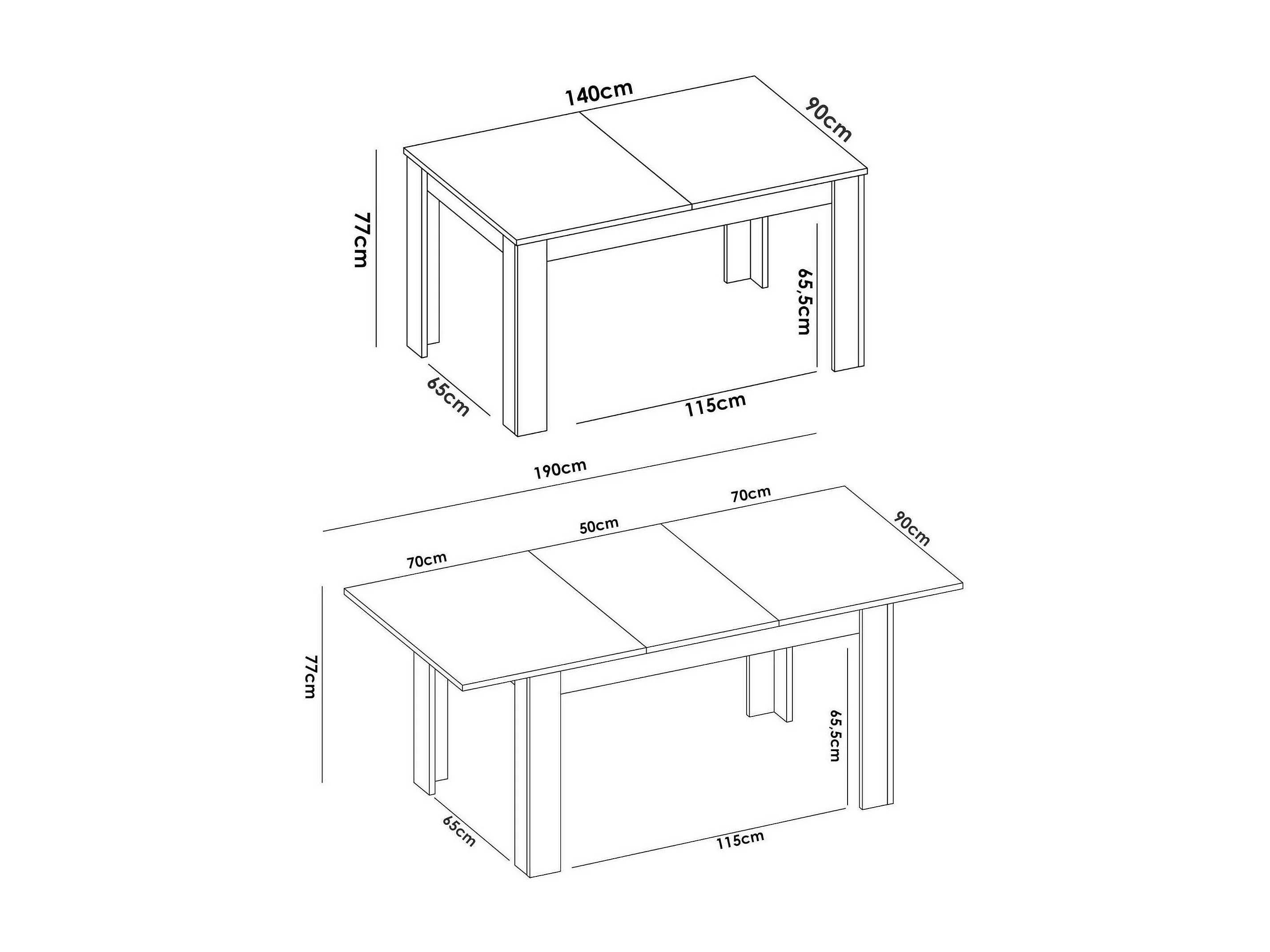 Table extensible Caladora, Console extensible multi-positions, Table à manger avec rallonge, 140/190x90h77 cm, Blanc