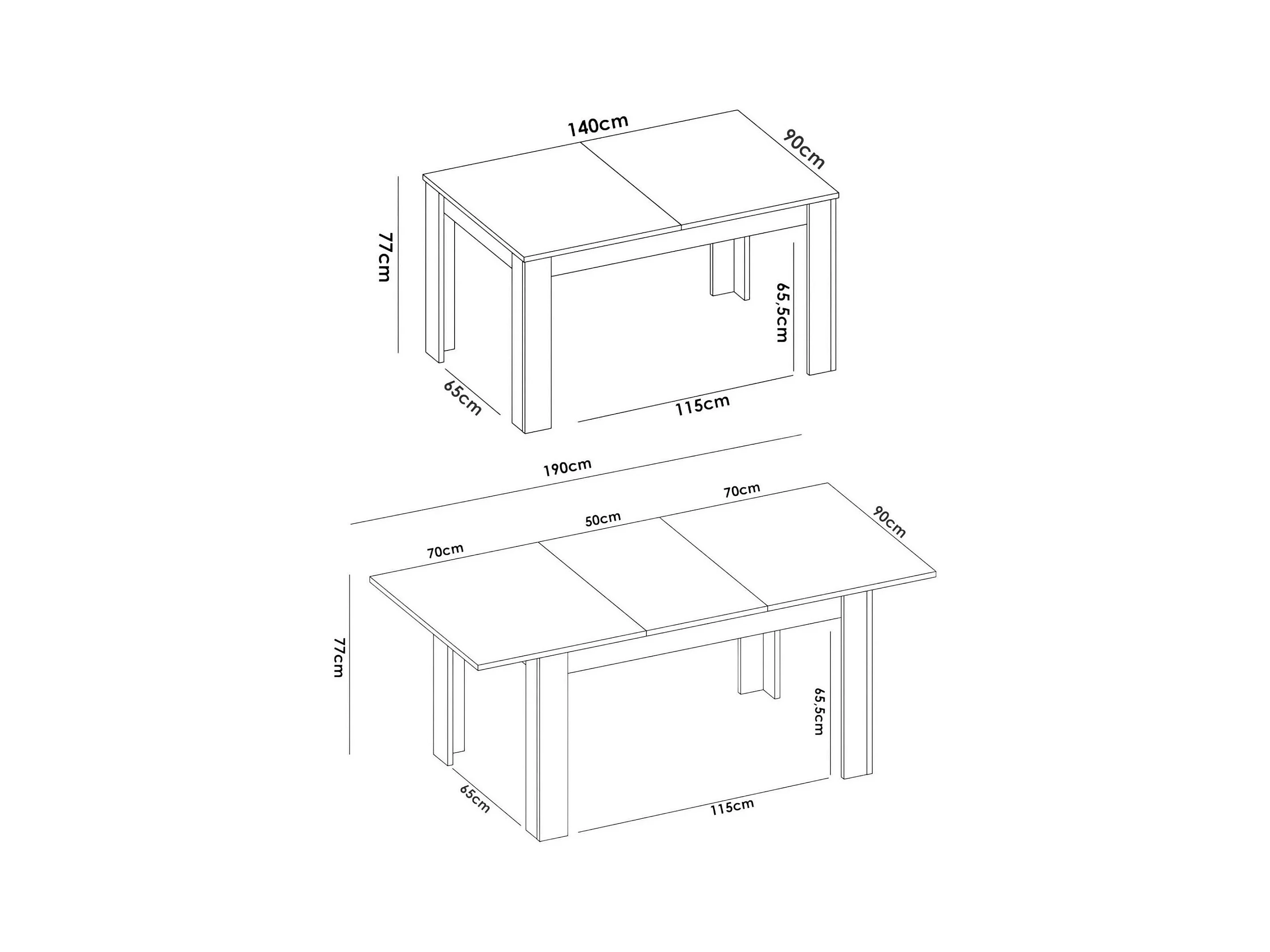 Table extensible Caladora, Console extensible multi-positions, Table à manger avec rallonge, 140/190x90h77 cm, Chêne