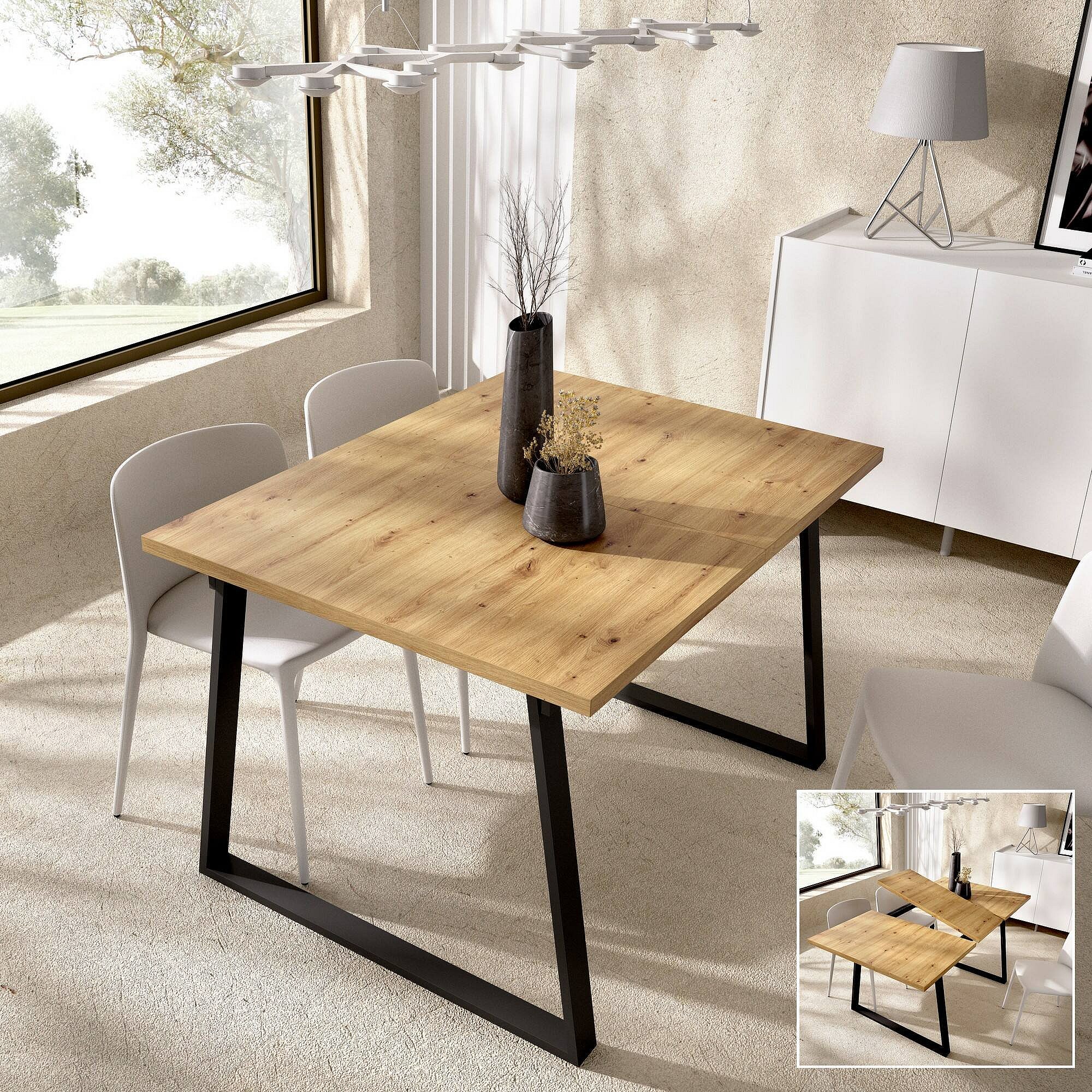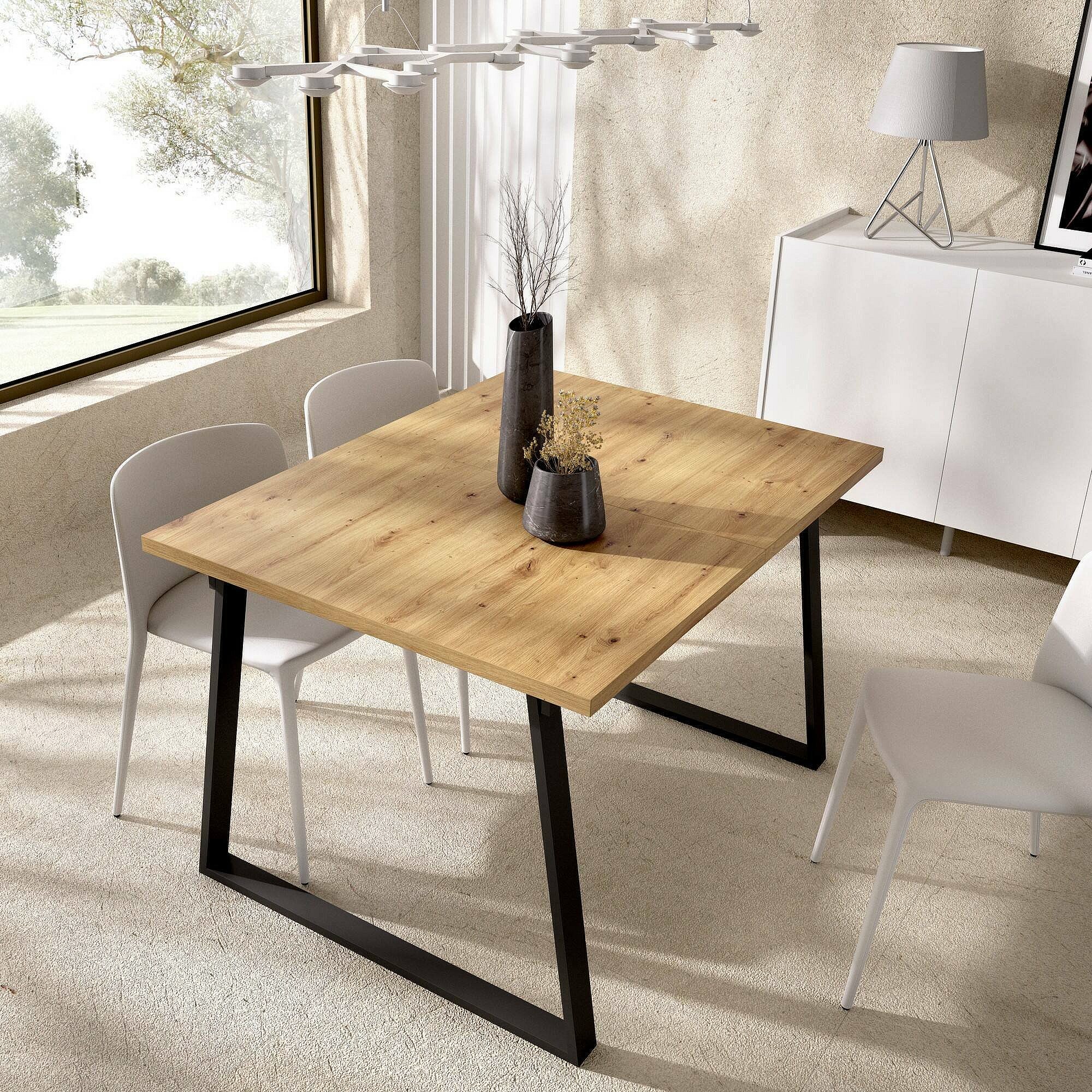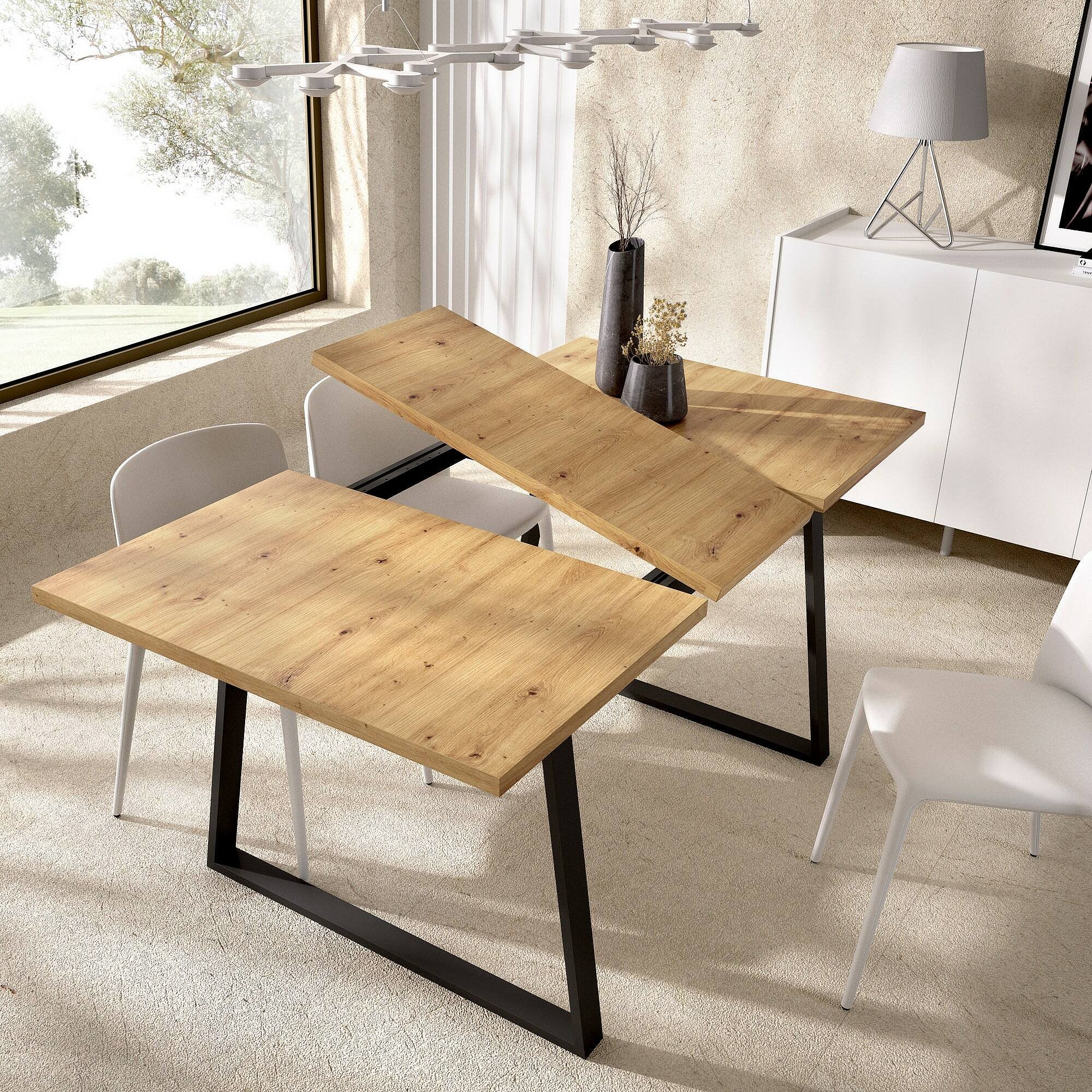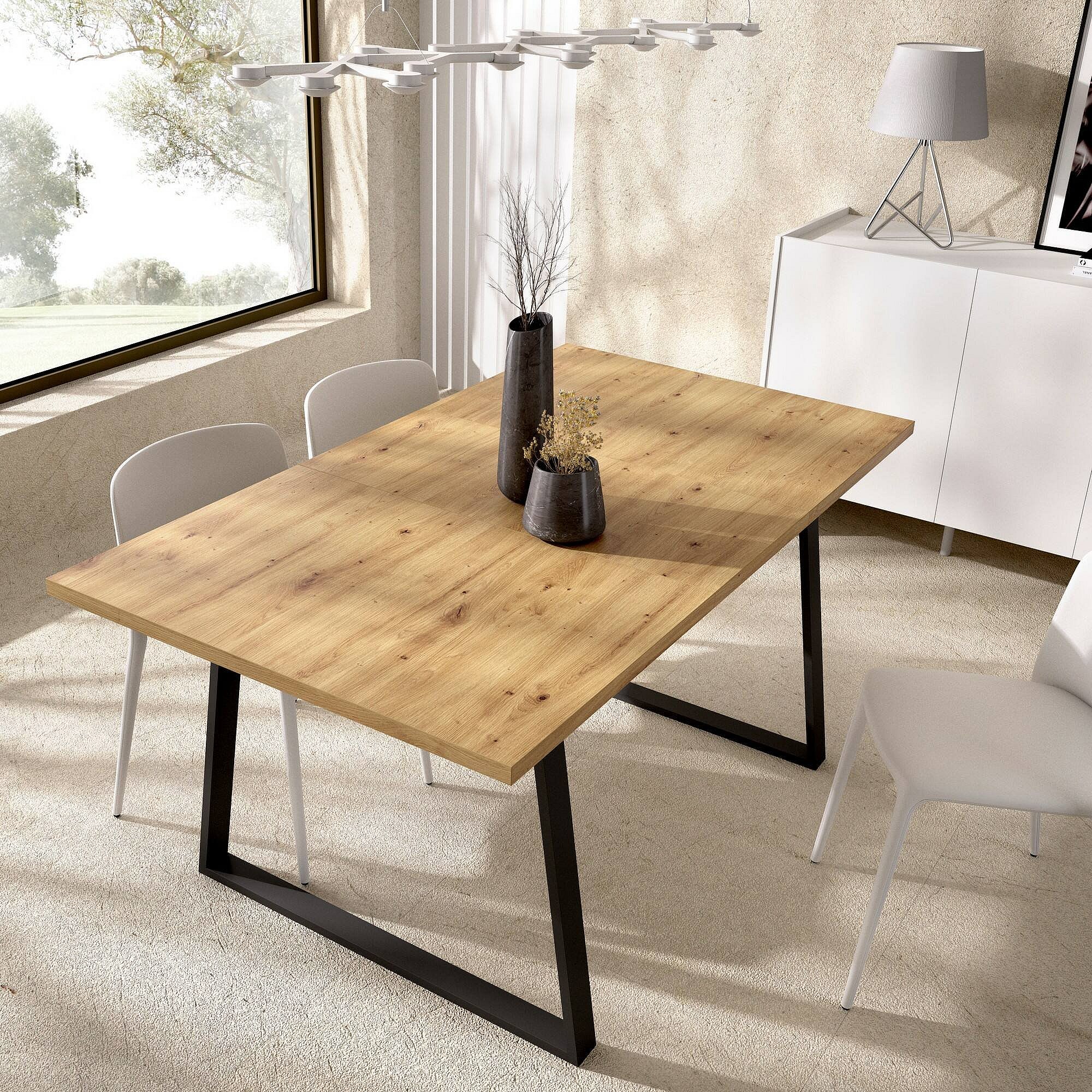 Table extensible Canale, Console de salle à manger polyvalente, Table rectangulaire de cuisine ou de salle à manger, 160x90h75 cm, Chêne Nodi
