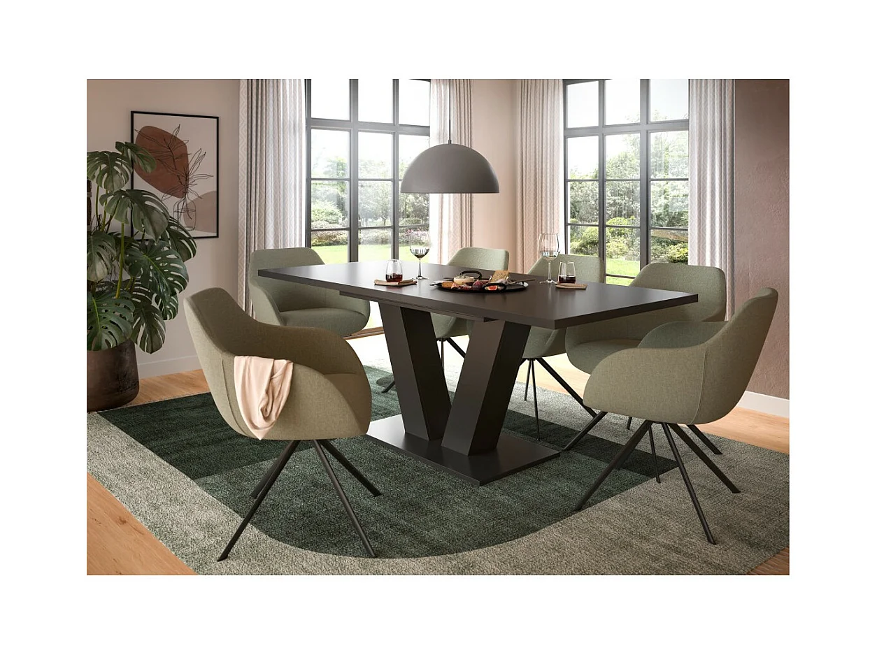 Table extensible CAPTURE – Pied design en V – Gris foncé – 150 à 190 cm