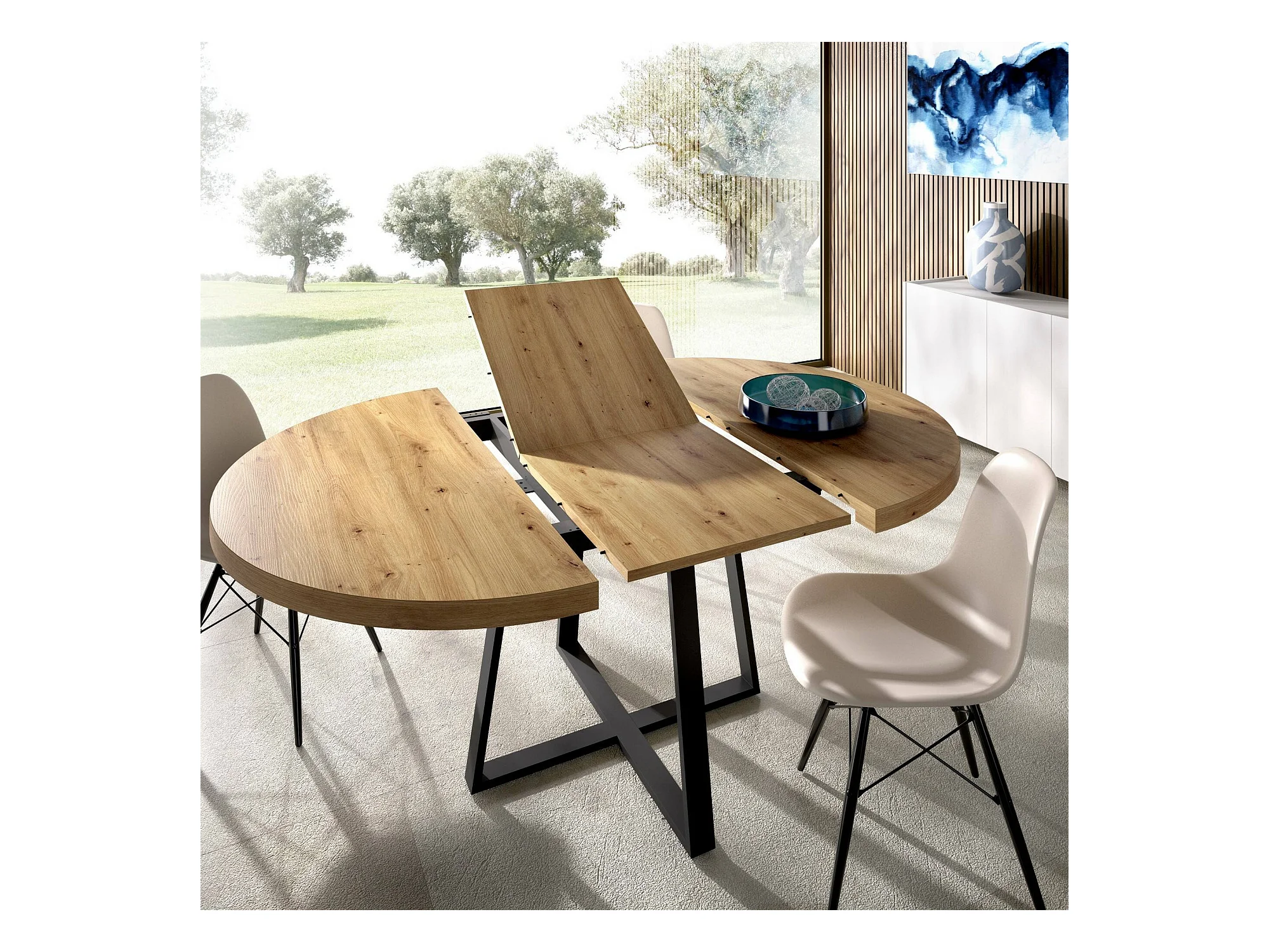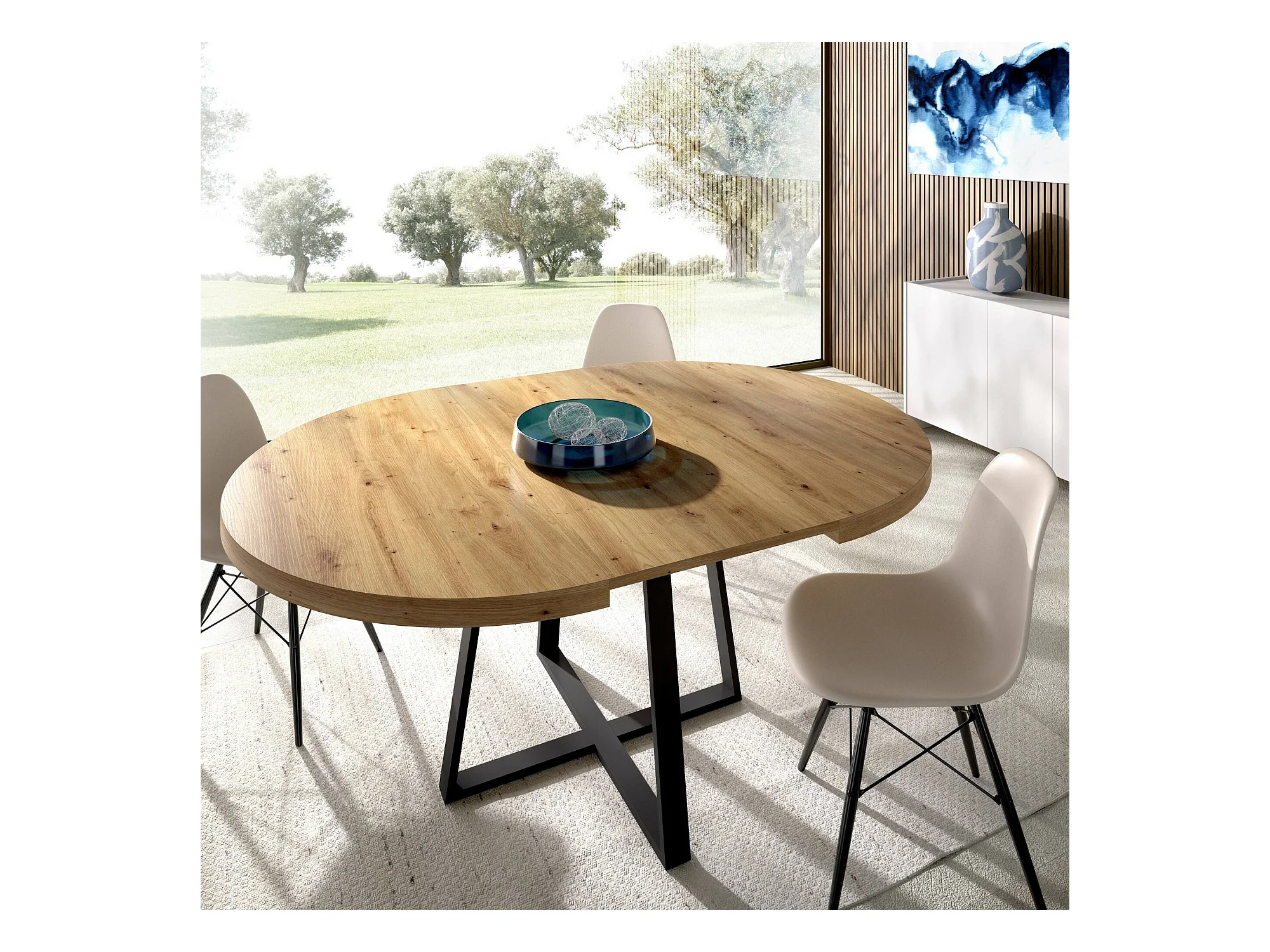 Table extensible Casarola, Console extensible ronde, Table à manger polyvalente ovale, 110/158x110h77 cm, Chêne Nodi