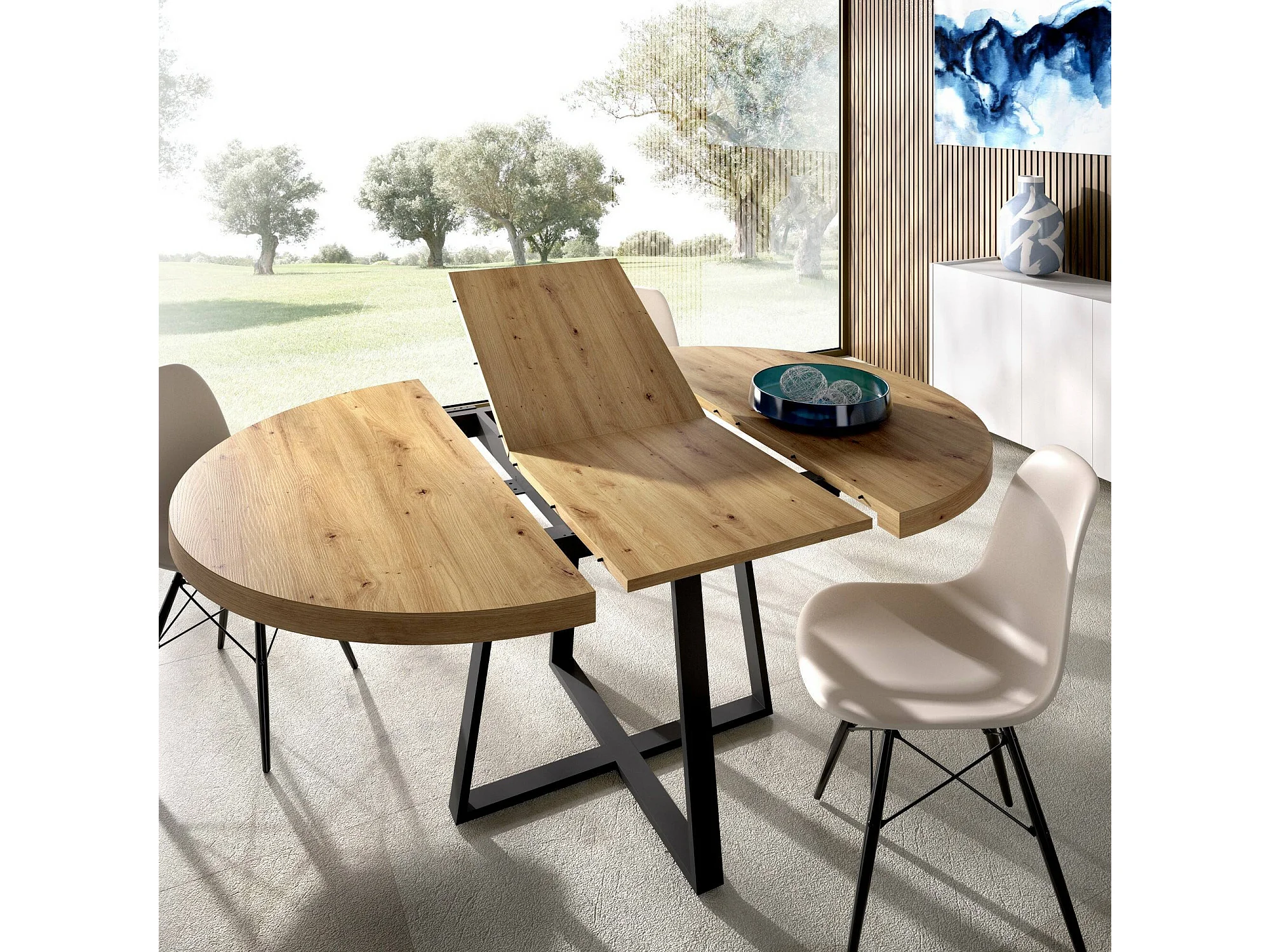 Table extensible Casarola, Console extensible ronde, Table à manger polyvalente ovale, 110/158x110h77 cm, Chêne Nodi