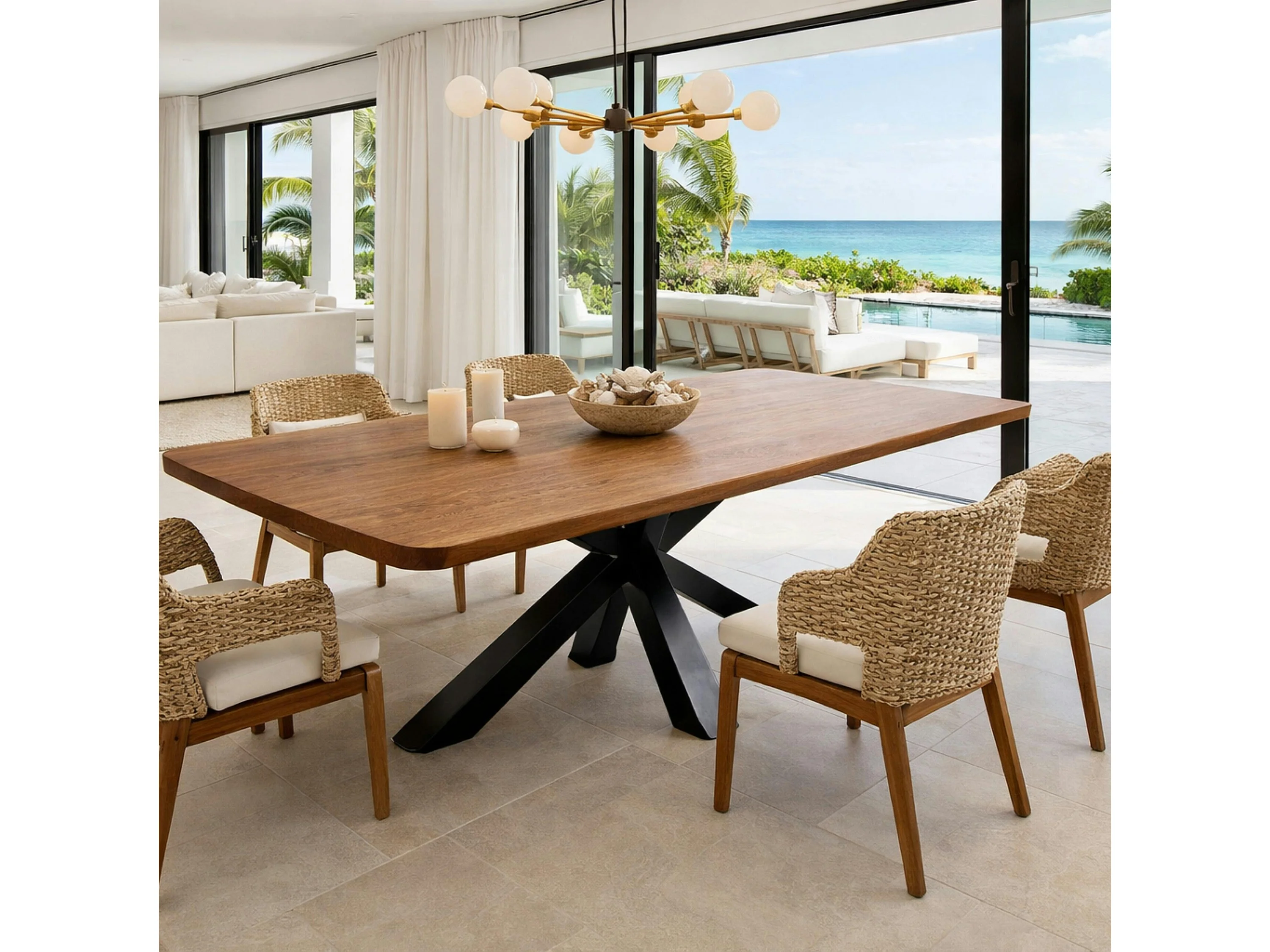 Table extensible chêne brun bords biseautés pied noir 200 cm PALERME